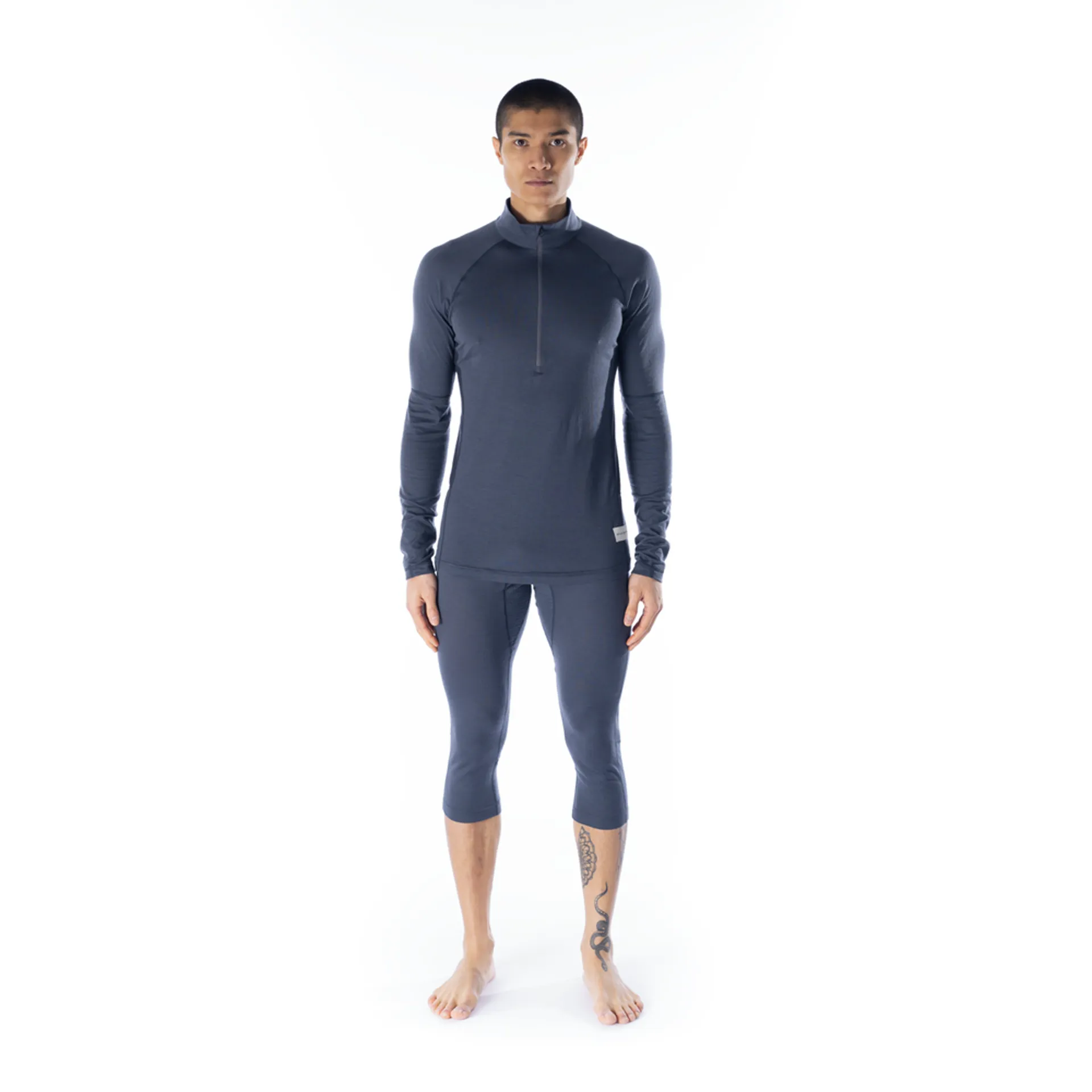The high neck sits reasonably close to the skin without being uncomfortable or restrictive. The YKK® zipper sits 1/4 length down the centre front, which is super handy if you need extra ventilation or even want to put another layer underneath.
