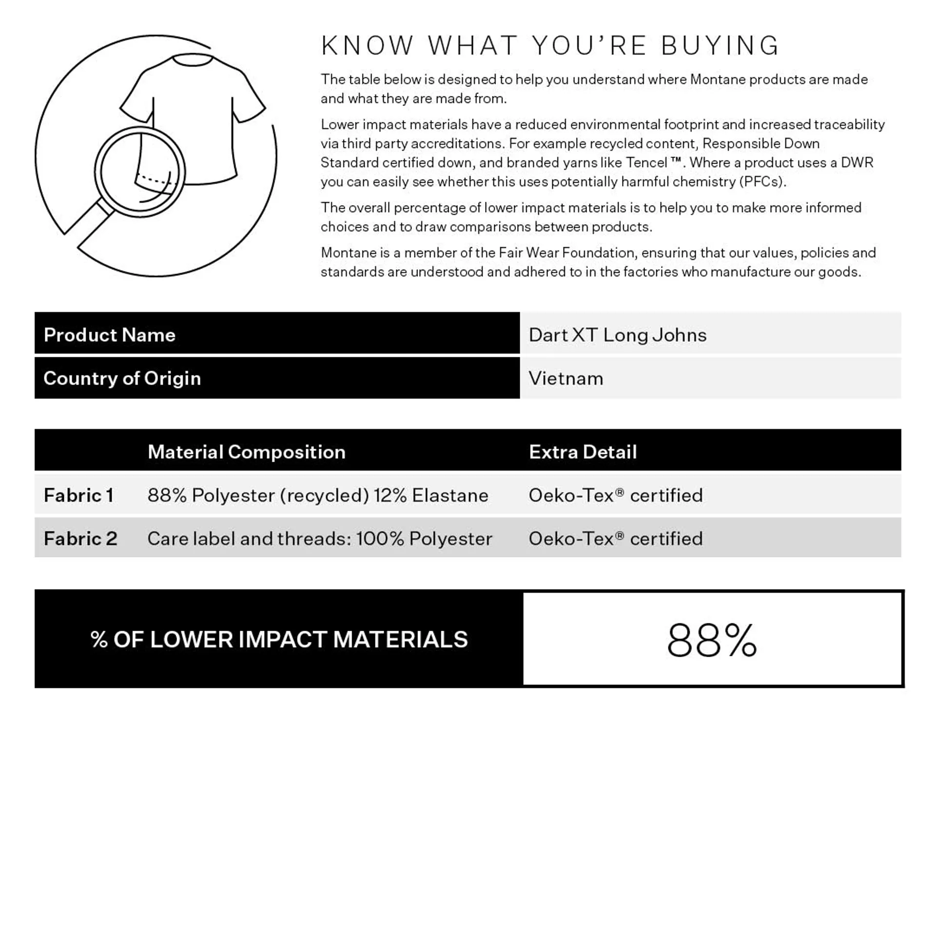 The Dart XT Long Johns are constructed from the same high-performance fabric as Montane's Dart Thermo family, called Apex Thermo Eco, made from 88% recycled nylon and 12% spandex for a comfortable four-way stretch.