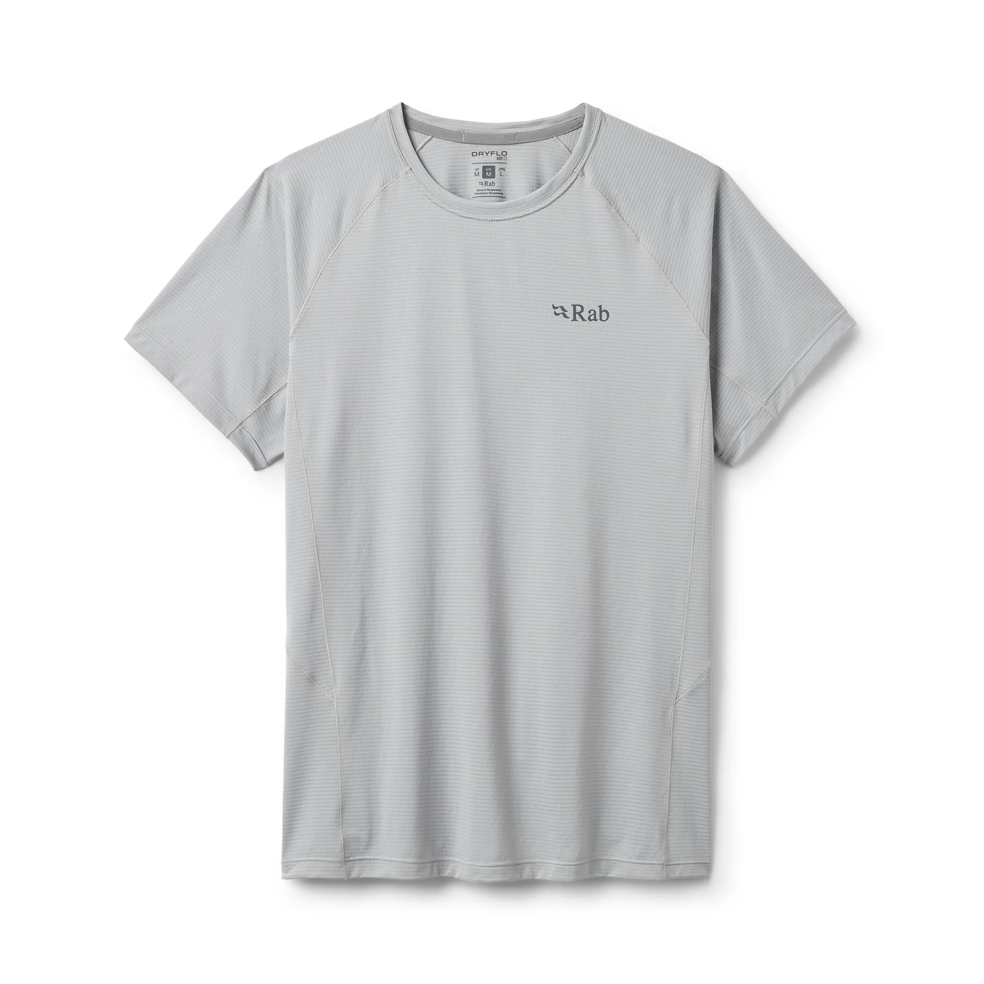 The t-shirt is made from Rab's Dryflo™ Air, which is a light and airy fabric made from polyester, 55% of which is recycled. The material is also highly moisture-wicking and fast-drying, allowing it to keep you feeling cool and fresh when you're pushing the pace.