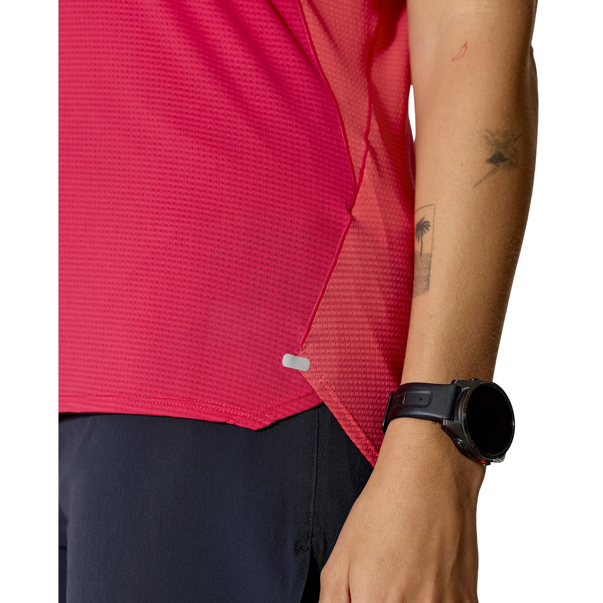 Split hem detailing helps the tee drape flatteringly down the body, whilst reflective branding helps enhance visibility to other road users, ideal for those who often exercise after hours.
