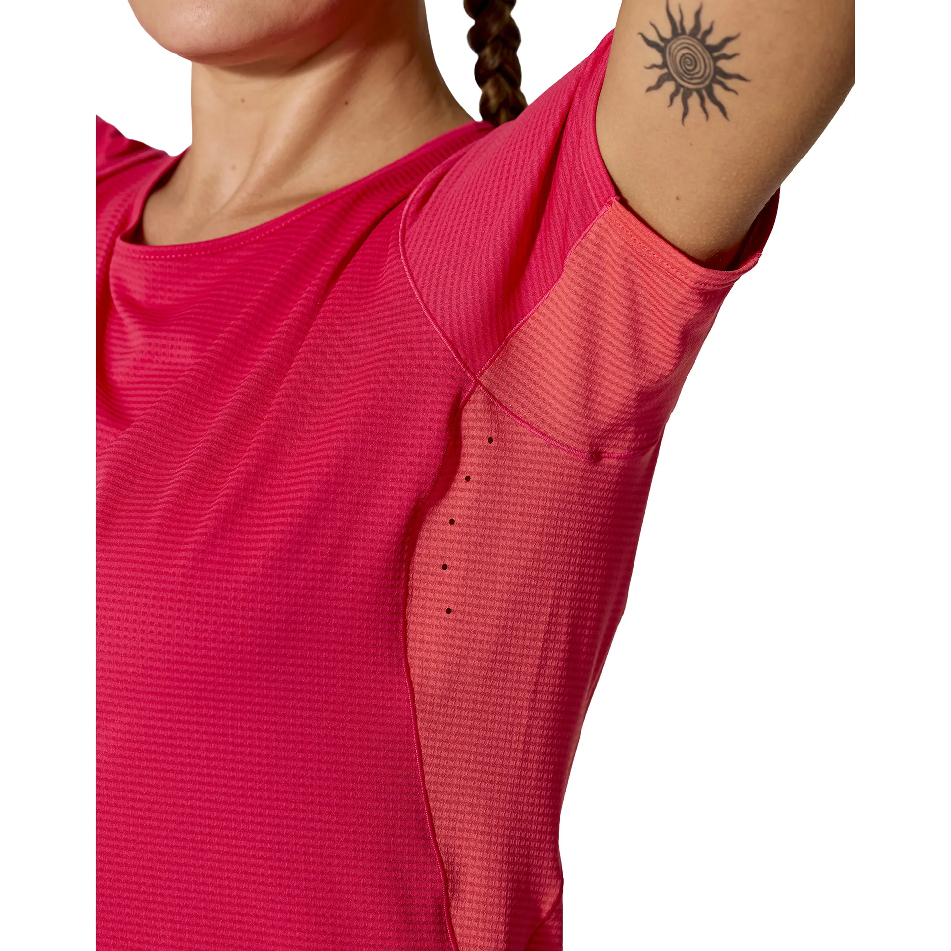 Small laser-cut holes in the back of the neck and underarm panels provide added ventilation to help keep you cool when you're pushing the pace in hot climates.