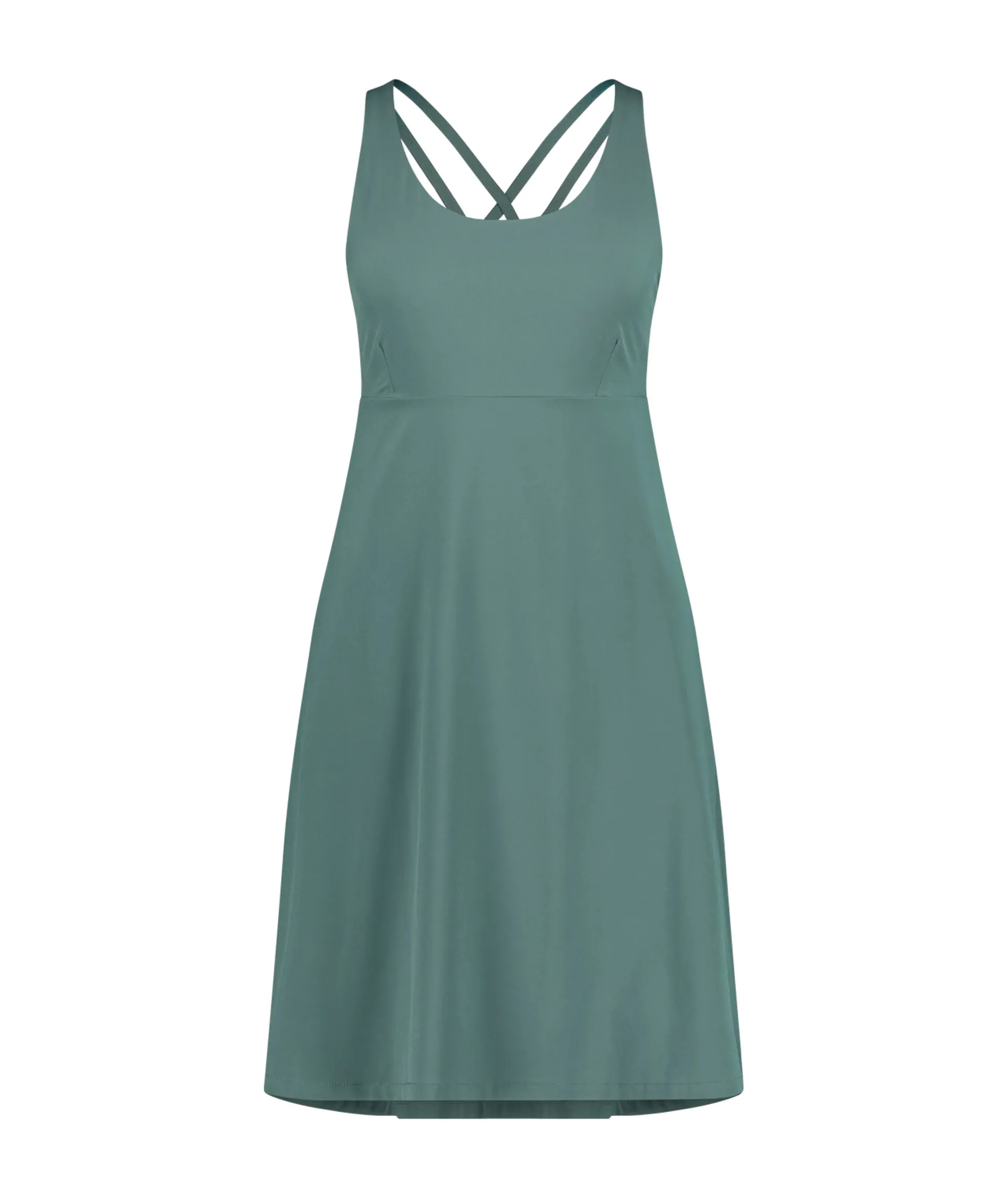 The fitted empire waist and A-line skirt create a feminine, curvy silhouette. Cross-back straps look sporty and feel secure, enhanced with the built-in shelf bra, which eliminates the need for any unsightly undies and means you won't have to put up with any annoying wires digging into your side throughout the day - hurrah!