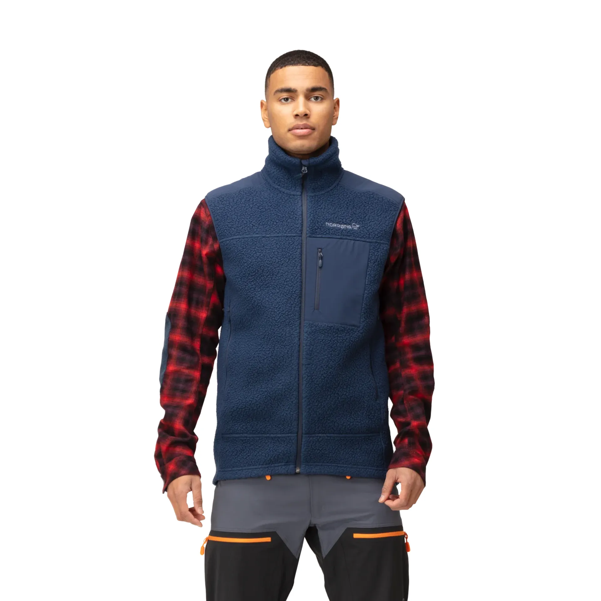 The embroidered Viking logo on the Norrona vest gives it a cool touch of style. The Viking spirit embodies bravery, exploration, and resilience—deeply ingrained in the Scandinavian culture. This spirit reflects an adventurous heart that thrives on discovering new territories and overcoming challenges, much like the Vikings who navigated unknown seas to explore distant lands.