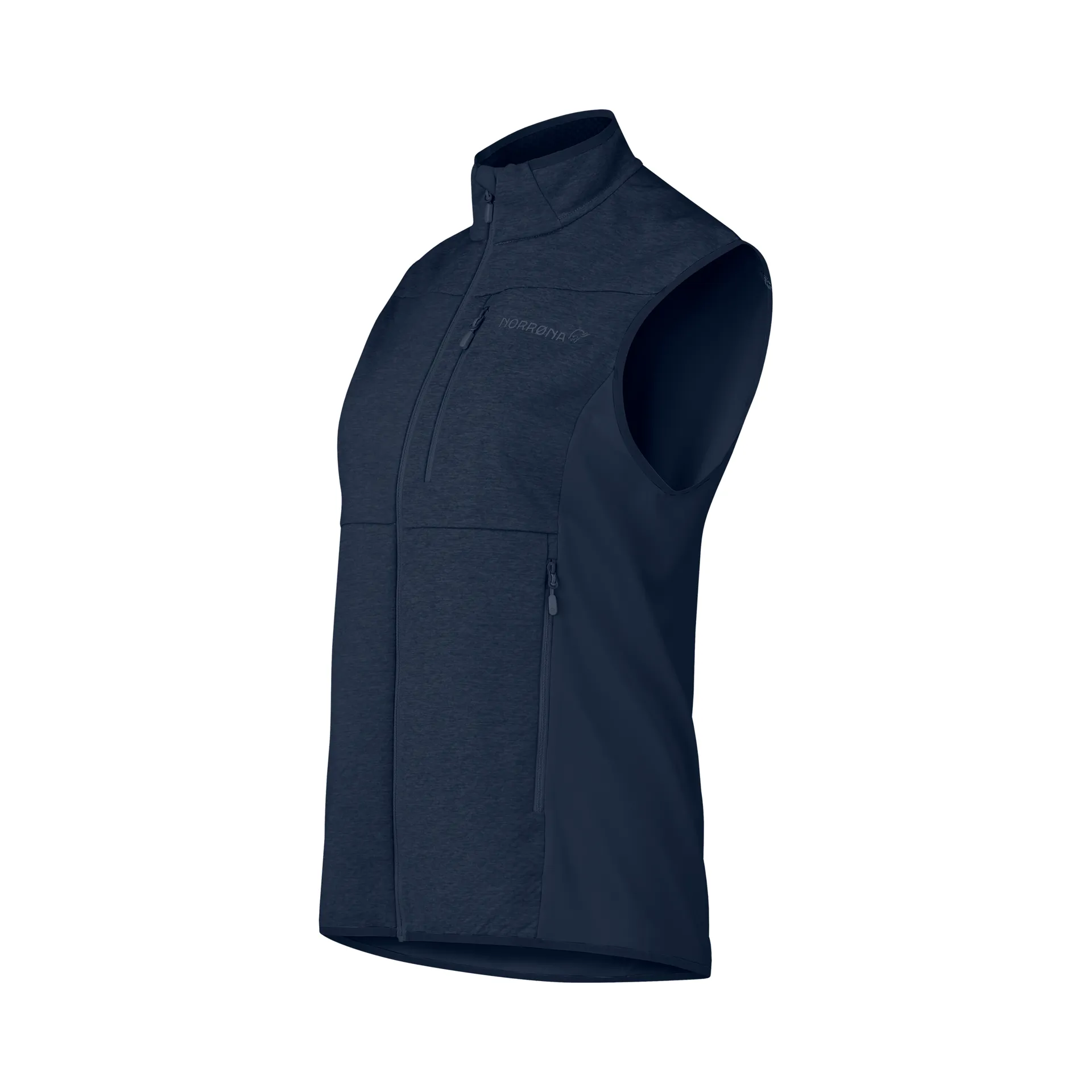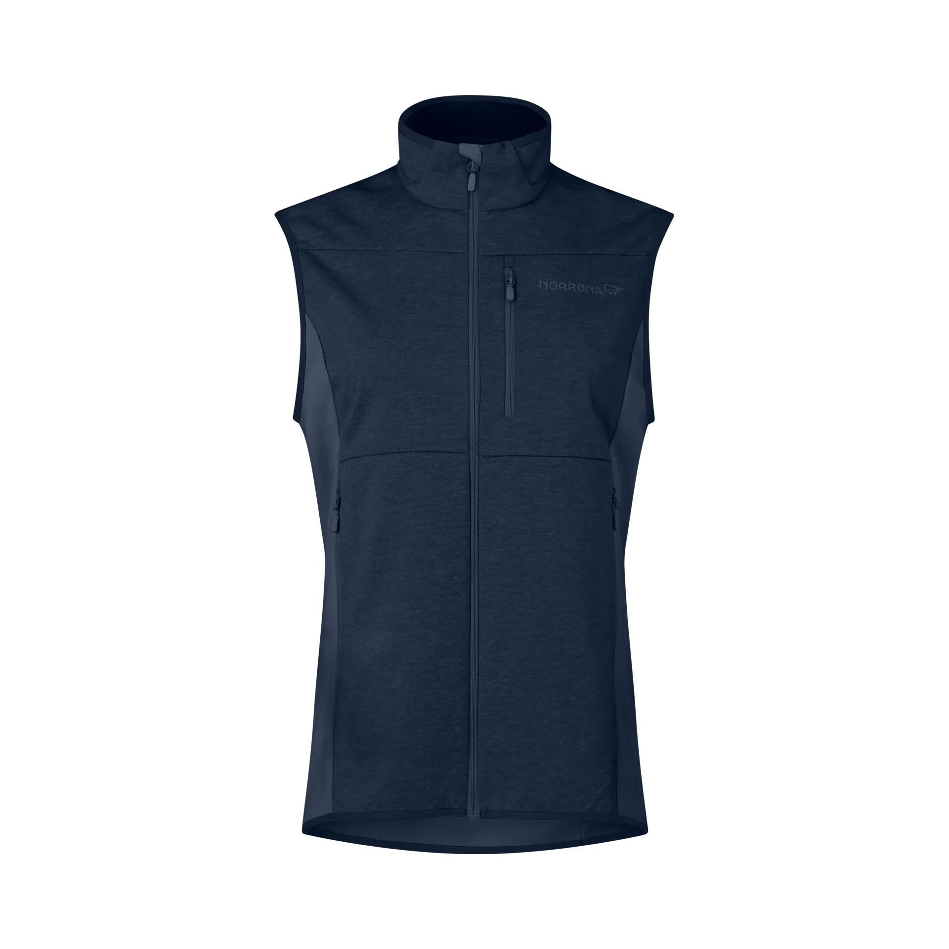 For areas like the back and underarms, where ventilation and flexibility are even more important, the vest uses a stretchy warm1 fabric. This lighter-weight material (170 gr/m²) is made with 70% recycled polyester. This fabric is explicitly designed for breathability and moisture transport, so it helps manage sweat and keeps you comfortable when you're on the move.