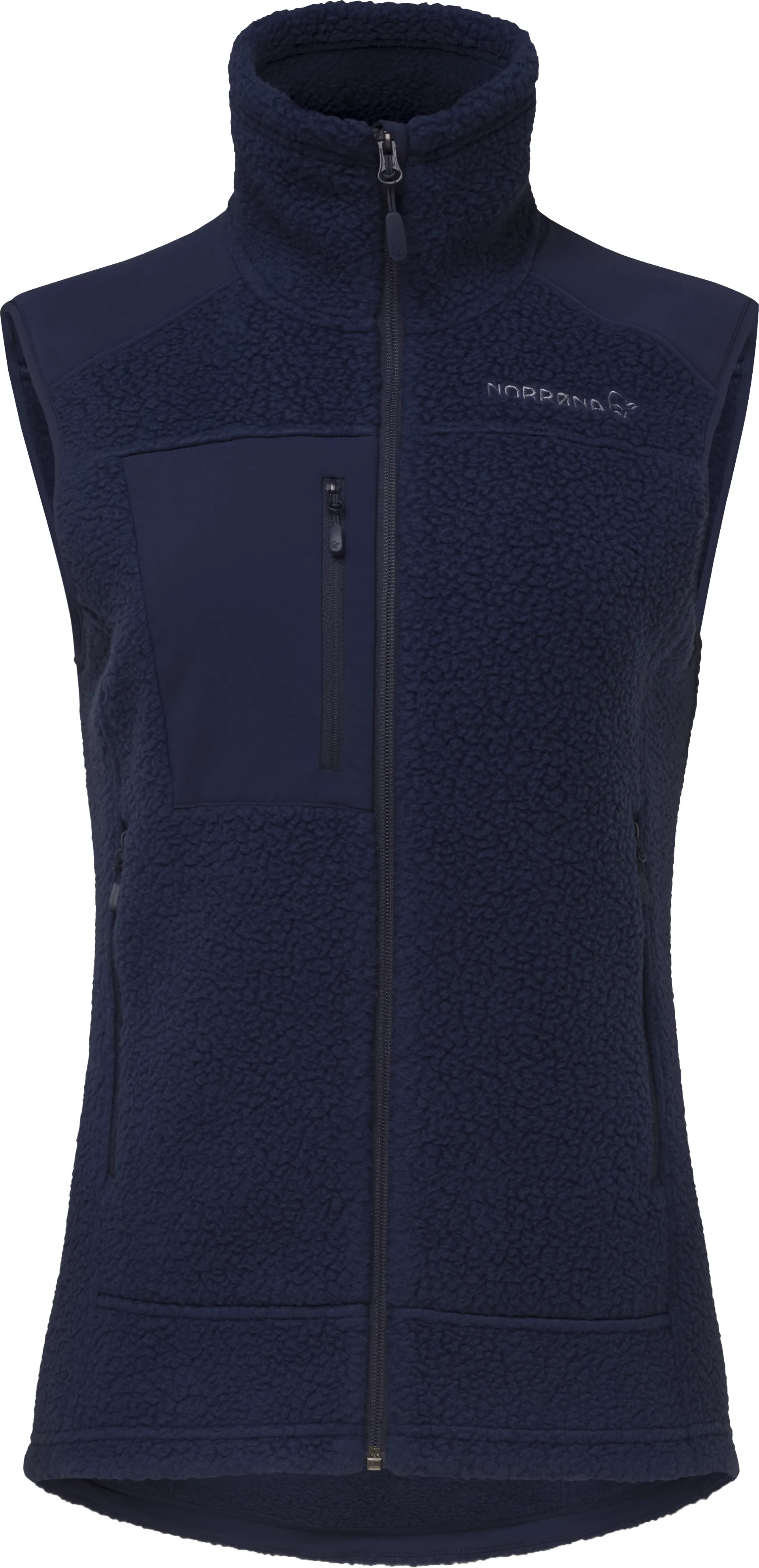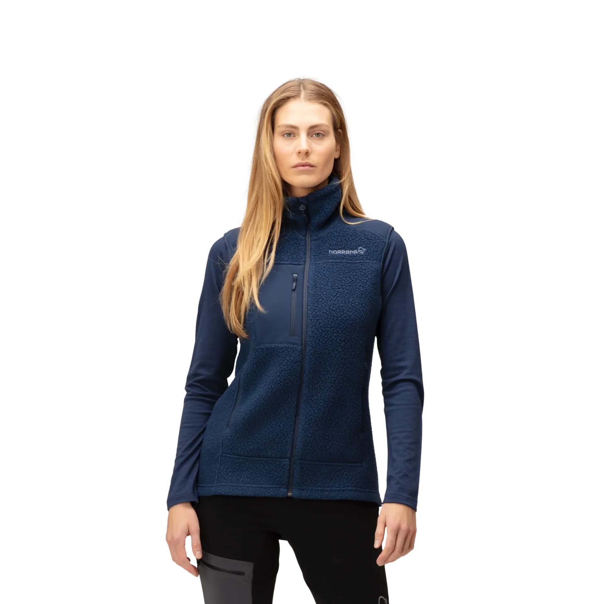 The embroidered Viking logo on the Norrona vest gives it a cool touch of style. The Viking spirit embodies bravery, exploration, and resilience—deeply ingrained in the Scandinavian culture. This spirit reflects an adventurous heart that thrives on discovering new territories and overcoming challenges, much like the Vikings who navigated unknown seas to explore distant lands.