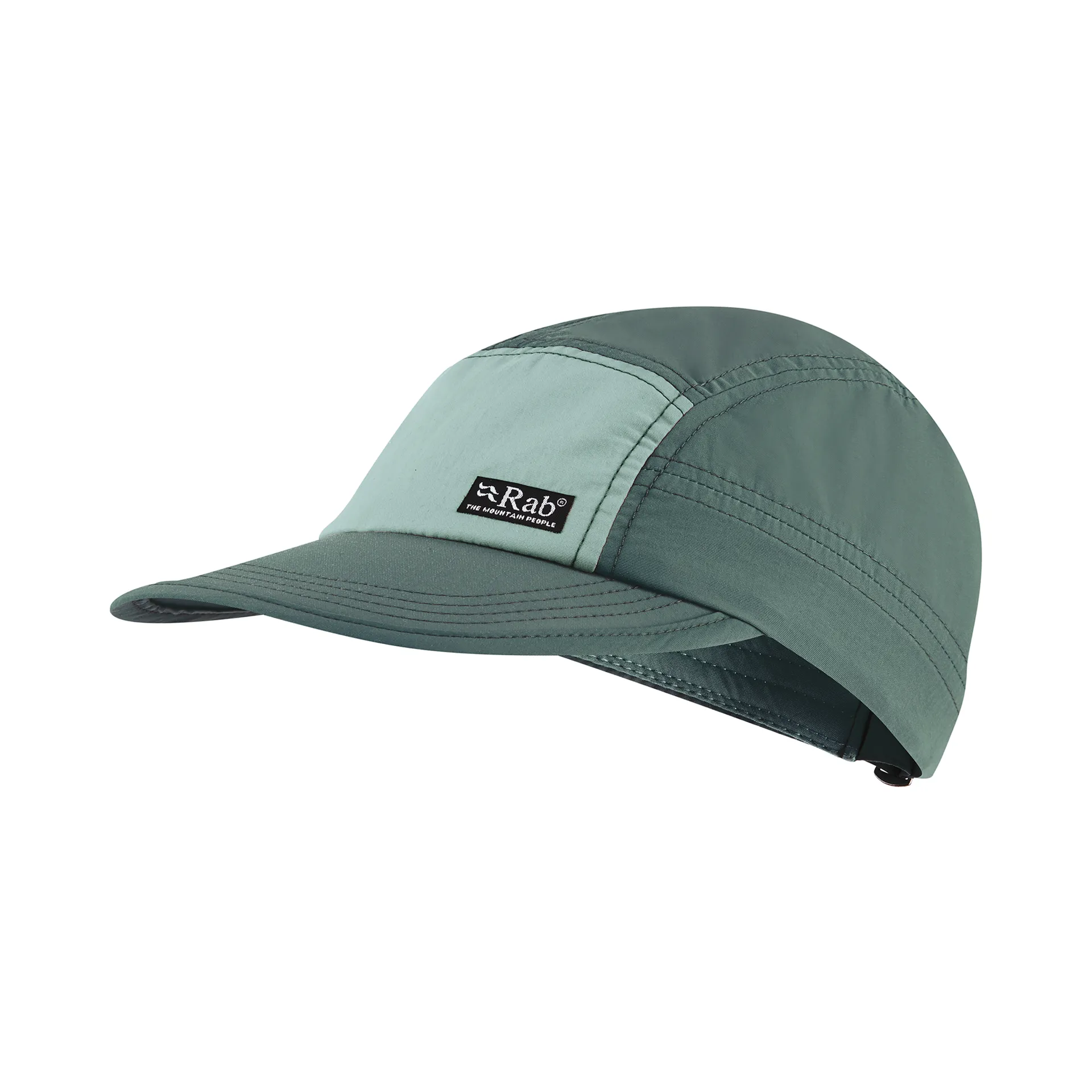 This comfortable cap features a classic five-panel design, low profile rear adjustment and tonal embroidered eyelets for airflow. The cap is decorated with a contrasting front panel and a small Rab-branded woven label to the front left.