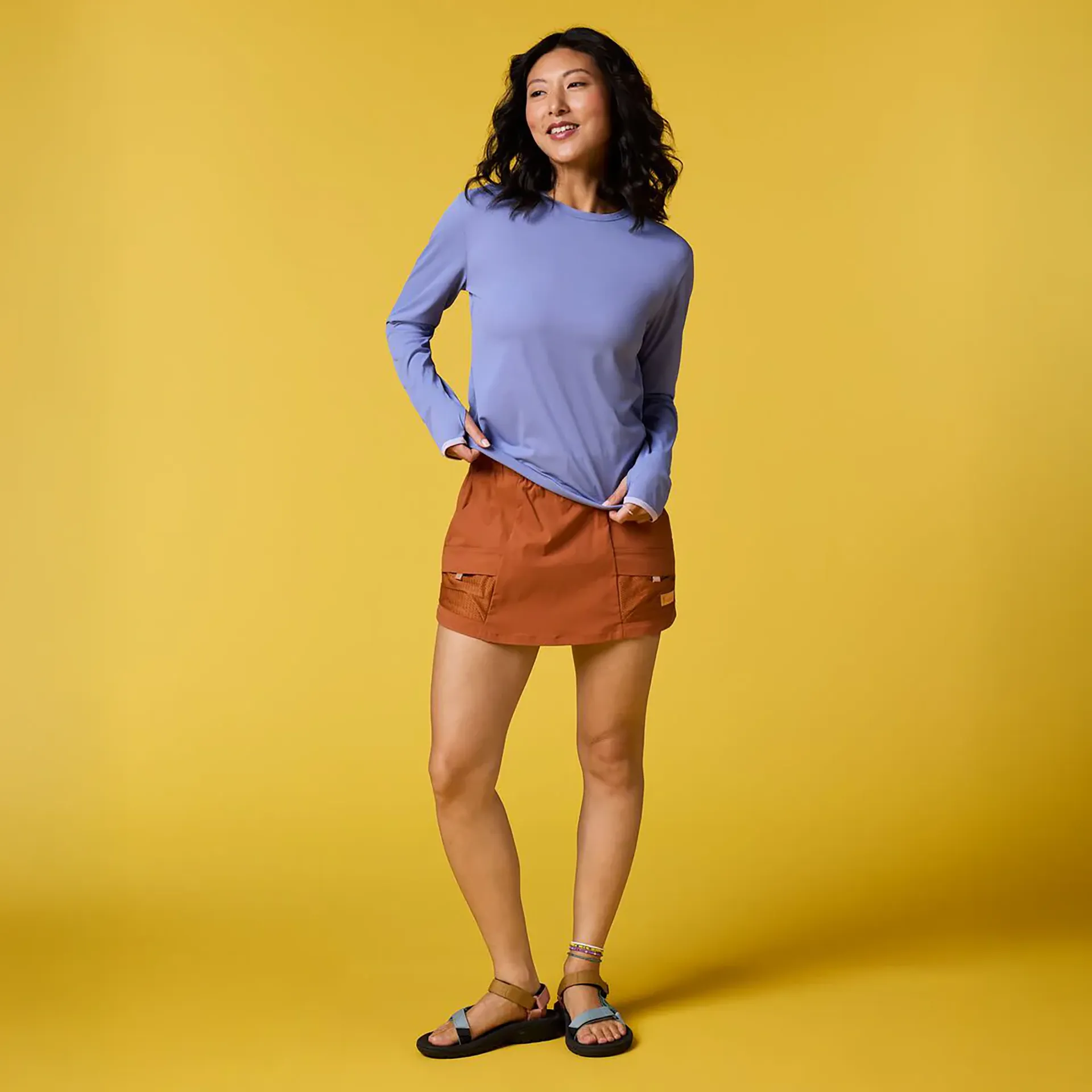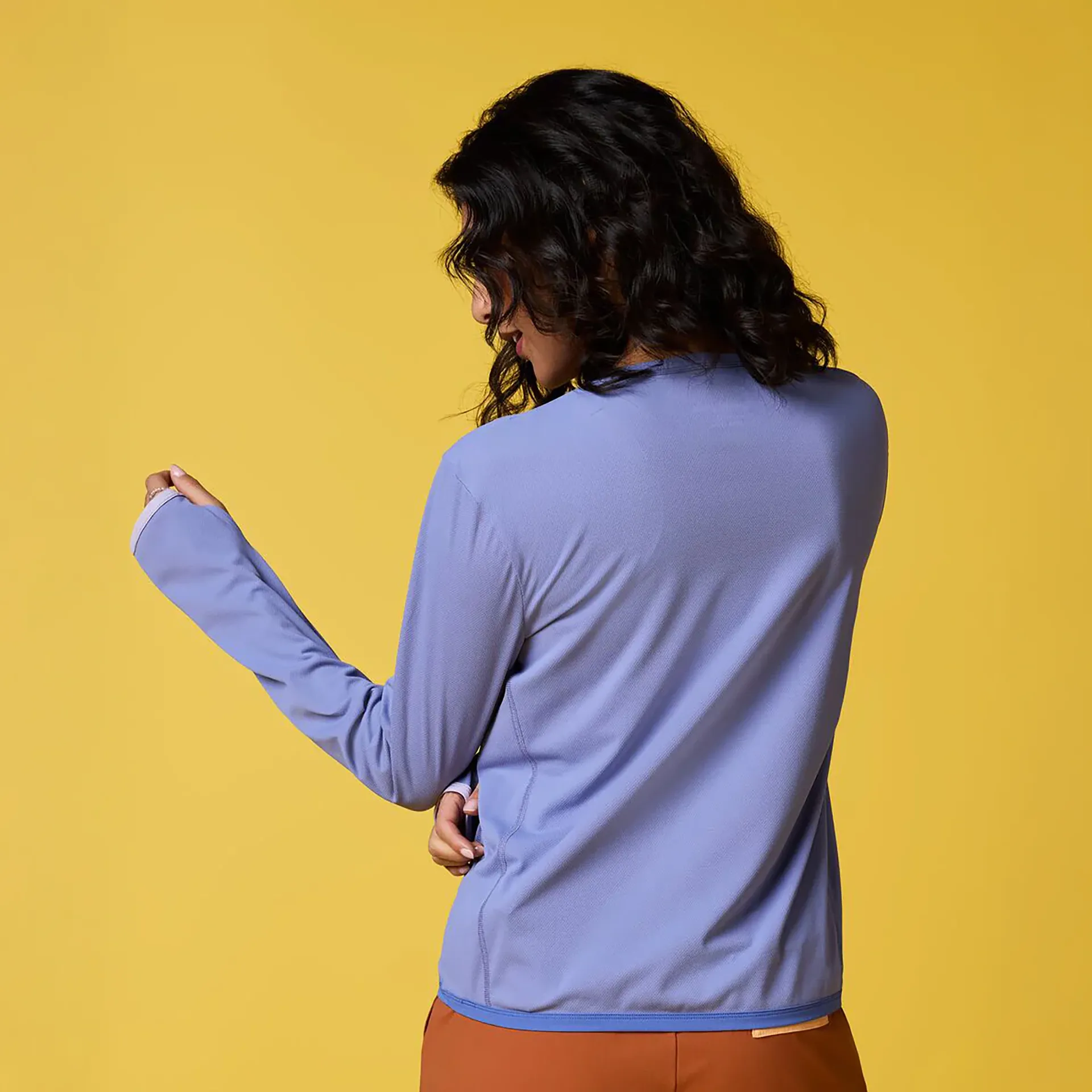 Another cool feature is the thumbholes, which are perfect for keeping your hands warmer or giving you extra sun protection. Plus, they help the sleeves stay more in place, so they don't ride up when you're moving around.