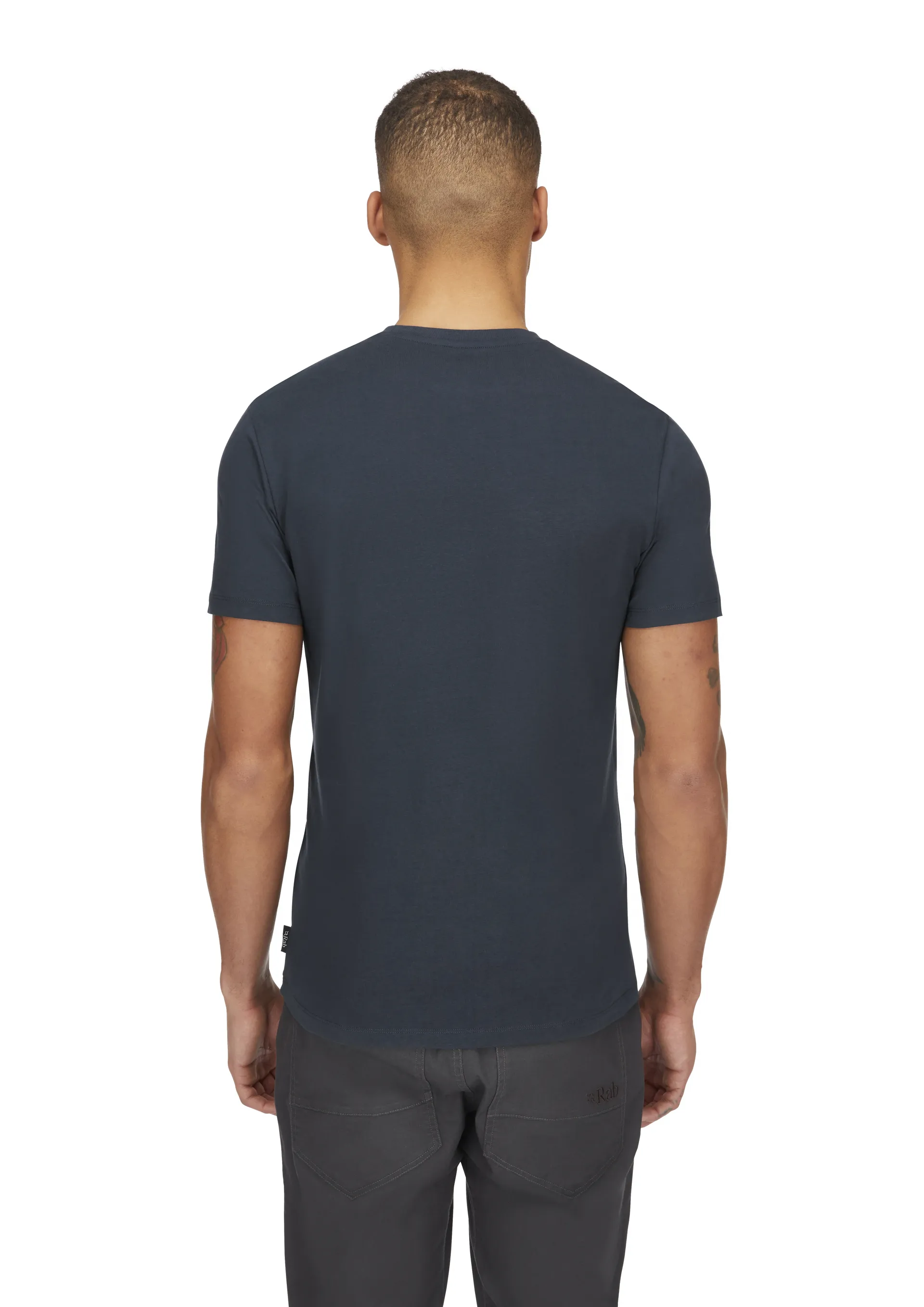 Overall, the t-shirt has a classic casual look; it features short sleeves, a round neckline and a beautifully detailed Rab sketch logo to the chest.