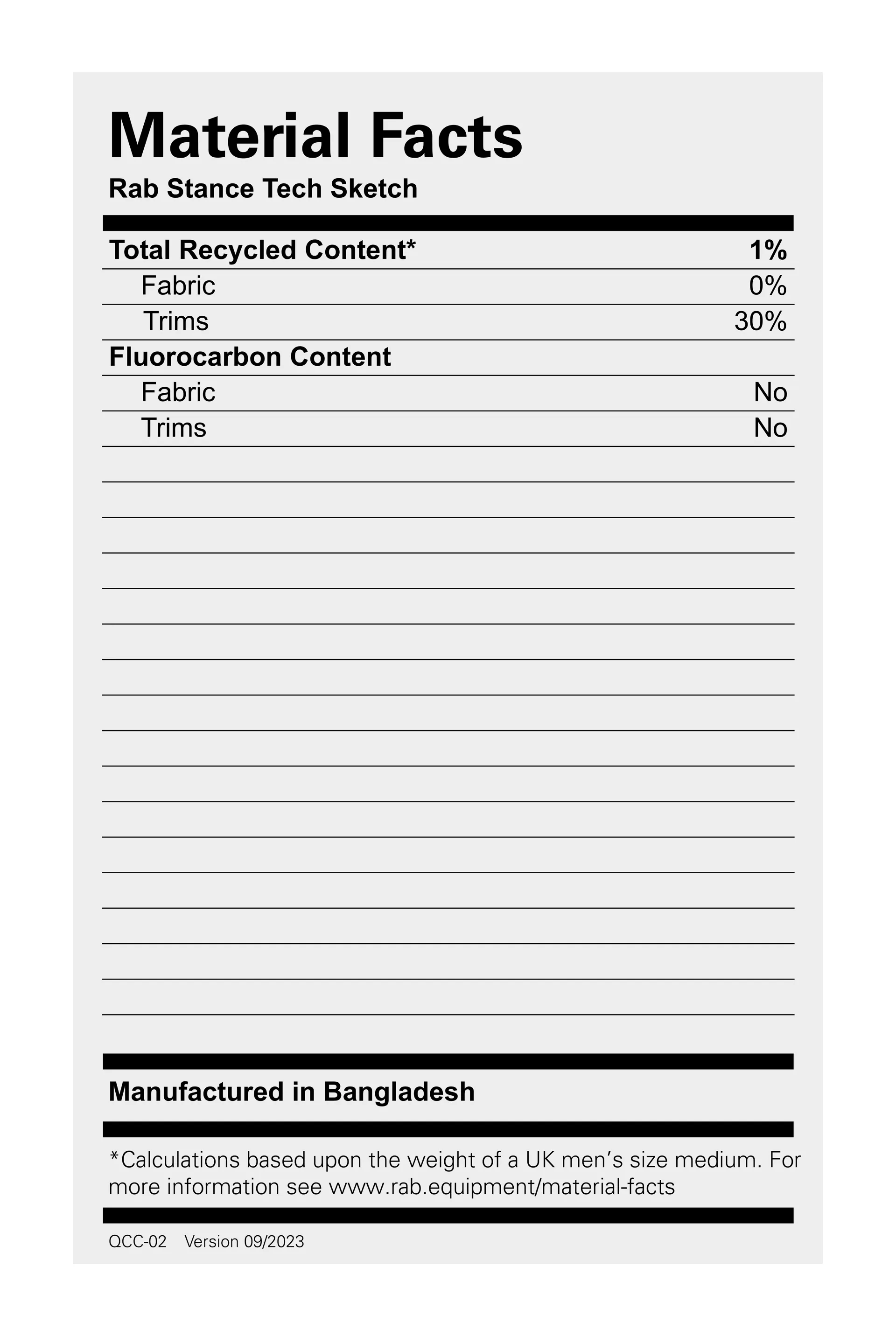 Rab Men's Sizing Information