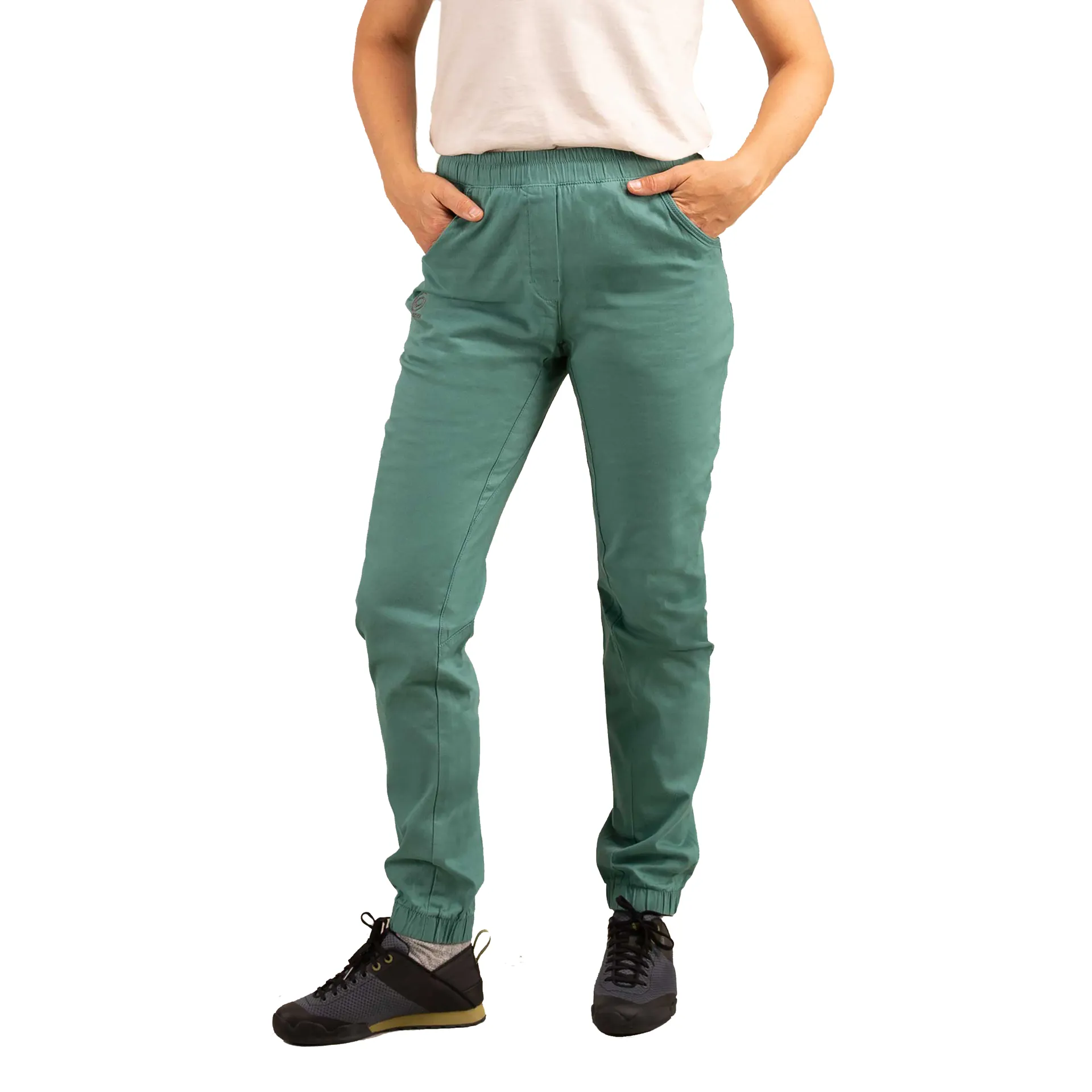 The stretch twill gives you freedom for high-steps and heel-hooks, the diamond crotch keeps things unrestricted, and the waistband sits comfortably under a harness. The cinched ankles are a small but brilliant touch too — no more catching hems on footholds.