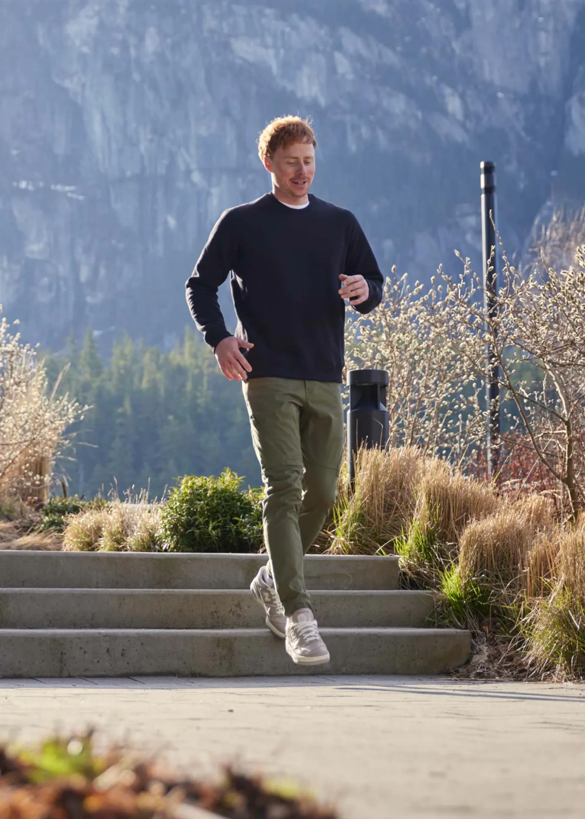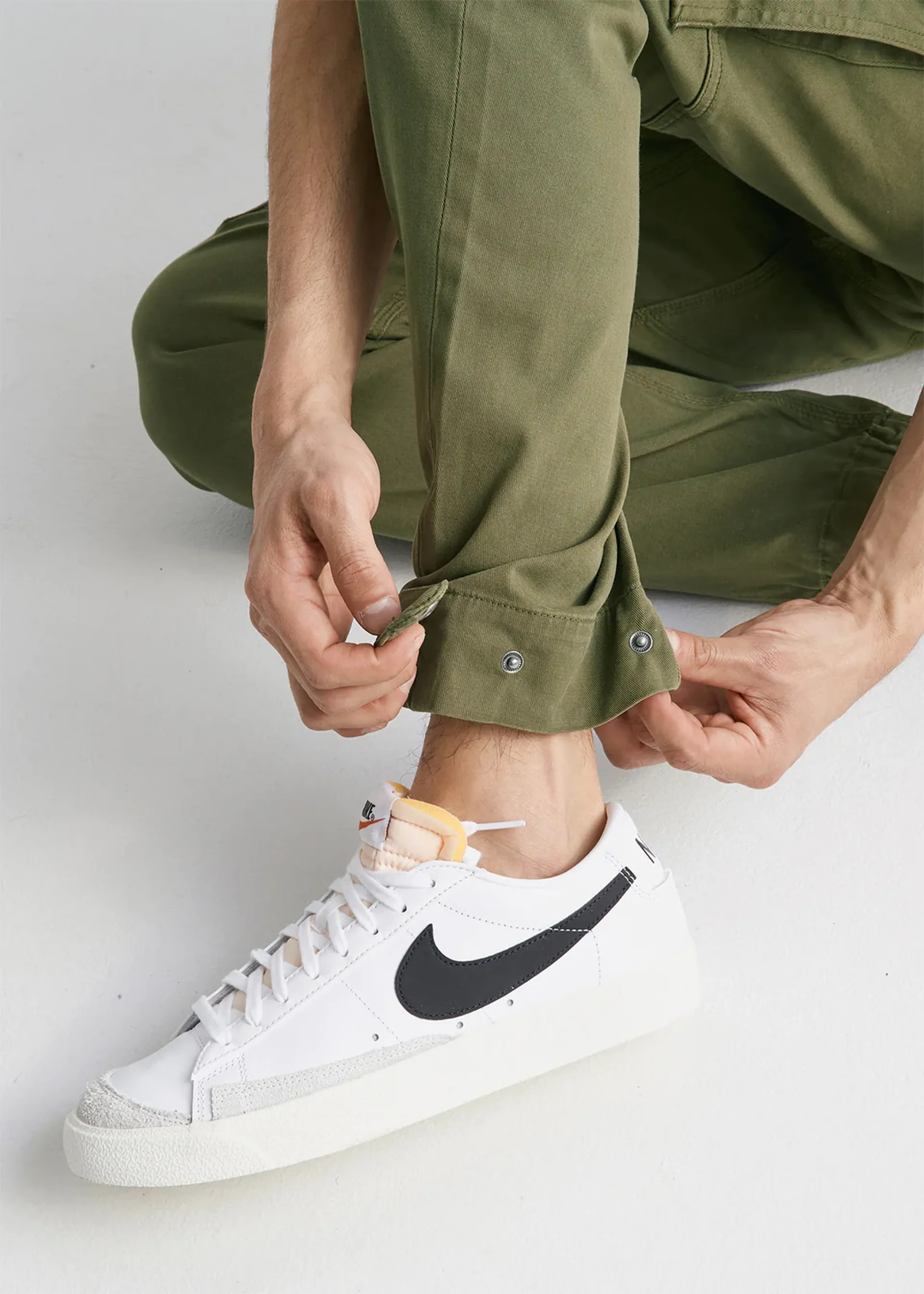 Created in a slim tapered fit, an adjustable cuff with a snap button lets you cinch the trousers in, stopping excess material from flapping around in high winds.
