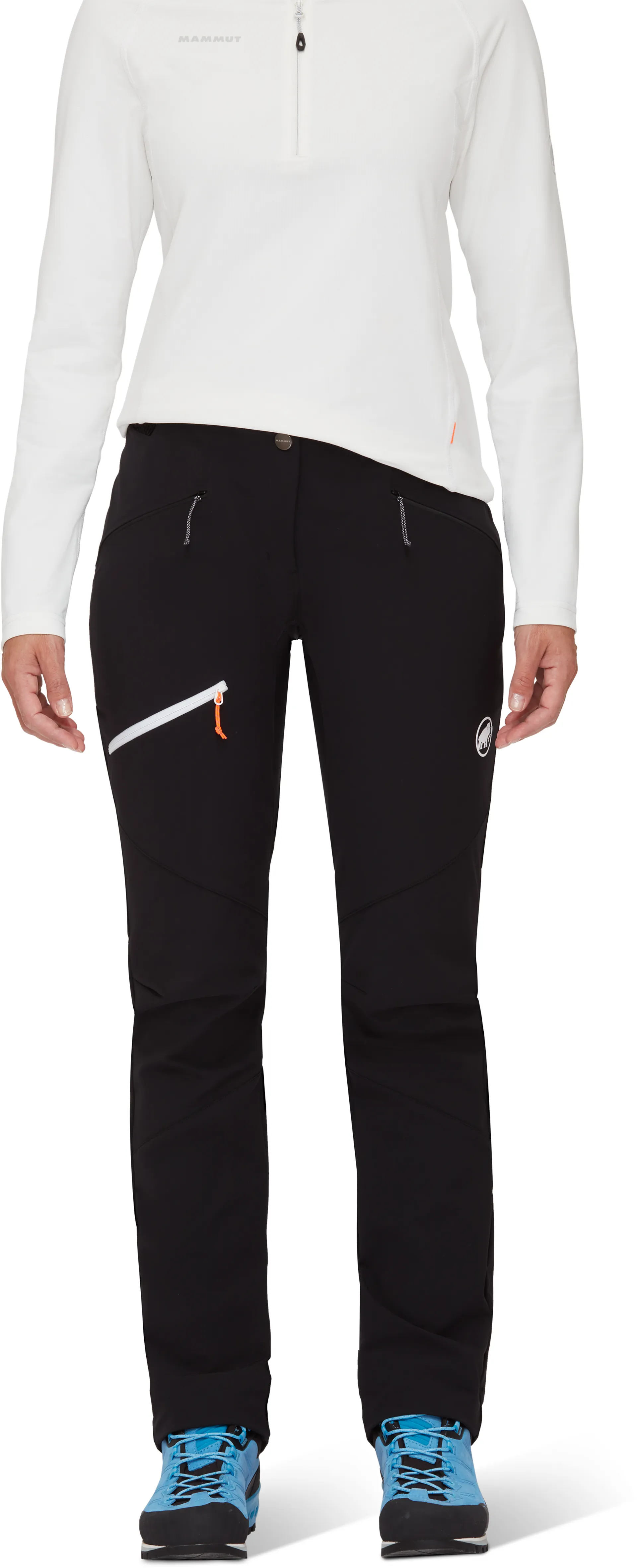 These trousers are made from a double-weave, four-way stretch material with Mammut SOFTech™ technology, Polygiene® Stay Fresh, and a PFC-free DWR (durable water repellent). It's robust enough to resist abrasion from rock and rough surfaces, yet provides stretch to improve freedom of movement for steep inclines and technical climbing manoeuvres.
