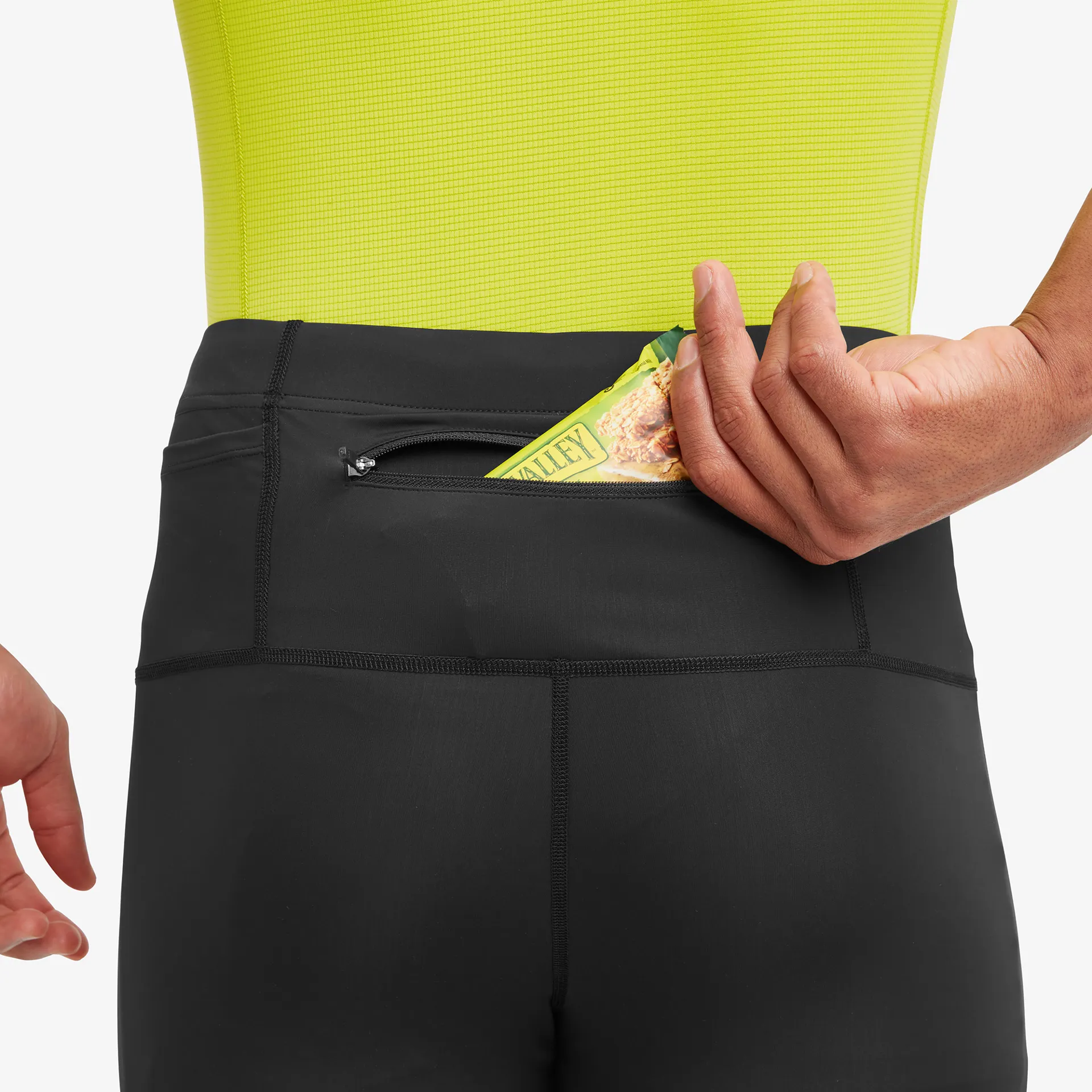 The fabric is also super stretchy and built for unrestricted dynamic movement across challenging trails and varied terrain.