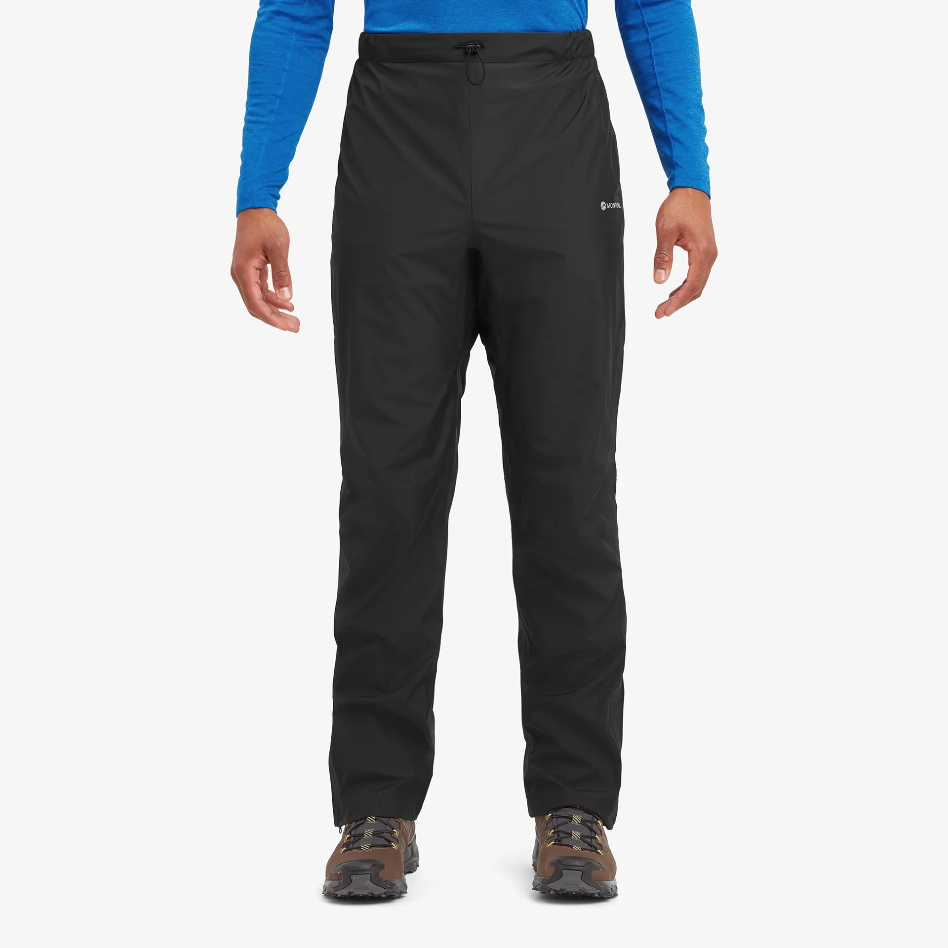 The Solution Pants feature an elasticated waistband and pull-on design, making them easy to pop on when the rain clouds gather, and comfortable enough to wear all day if the rain persists. The waistband features a front bungee cord adjustment to dial in the fit, giving you peace of mind that they won't fall down halfway through your hike. The knees are articulated for a natural range of movement and provide plenty of room for trousers underneath.