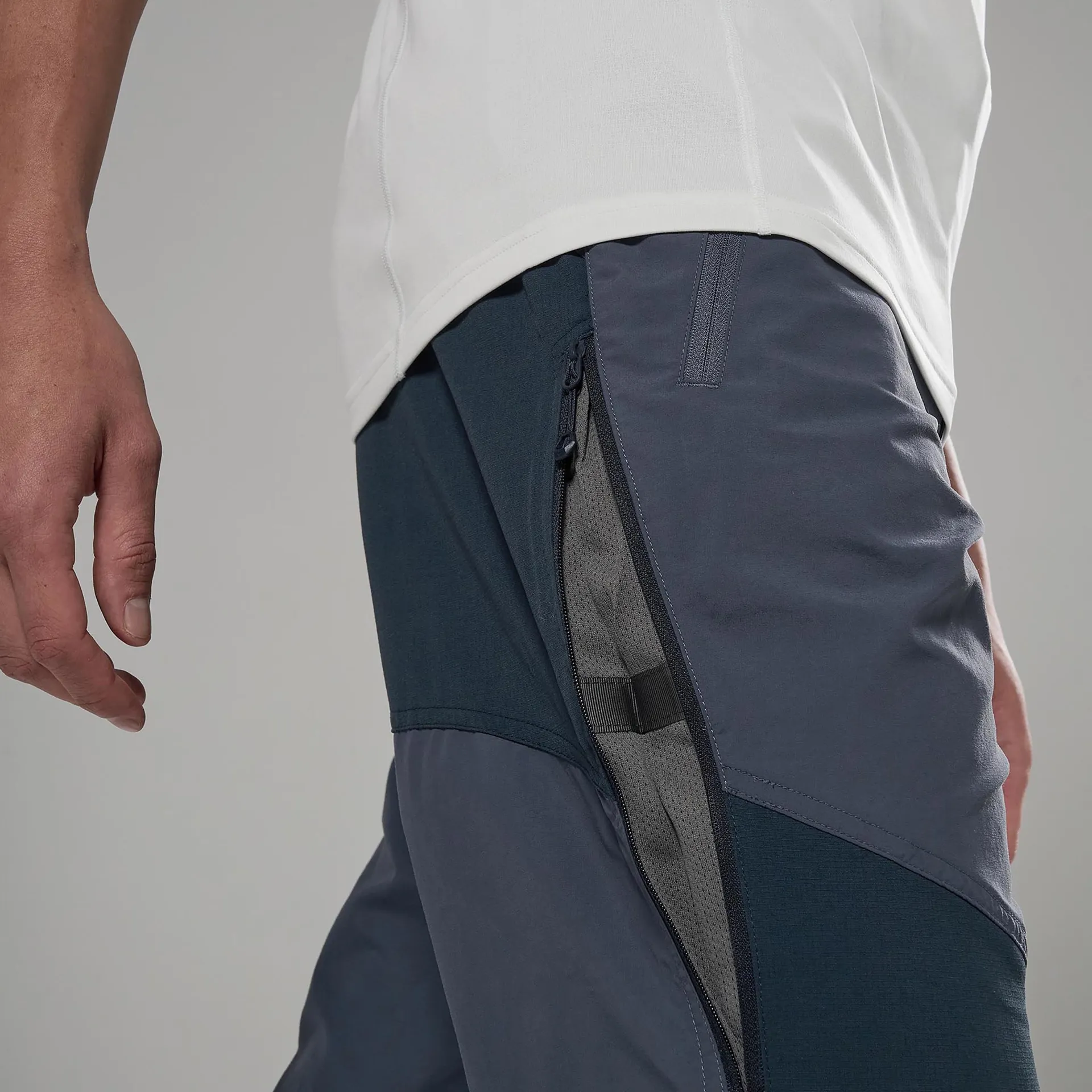 • Zipped, mesh-lined thigh vents