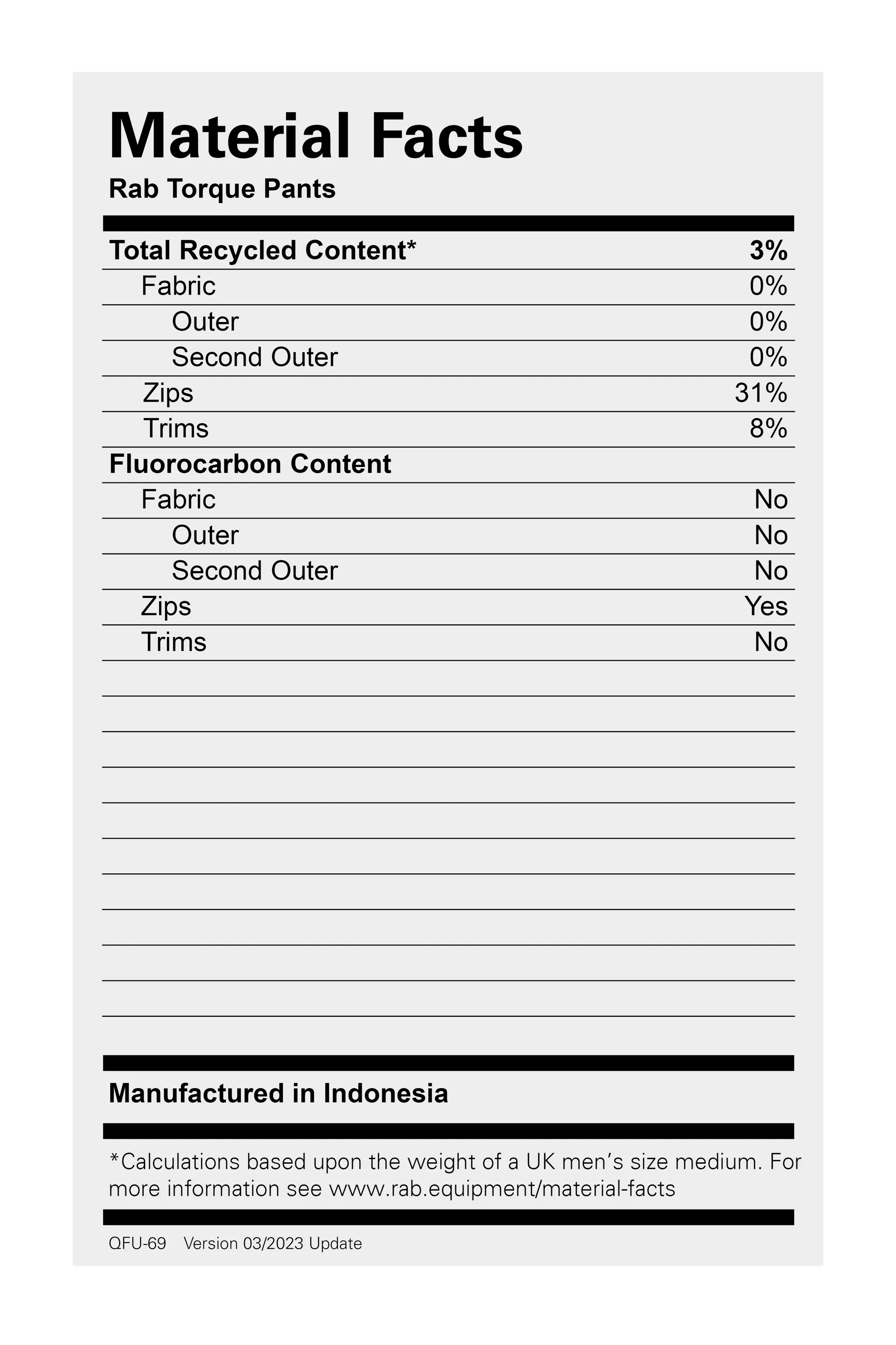 Rab Men's Sizing Information