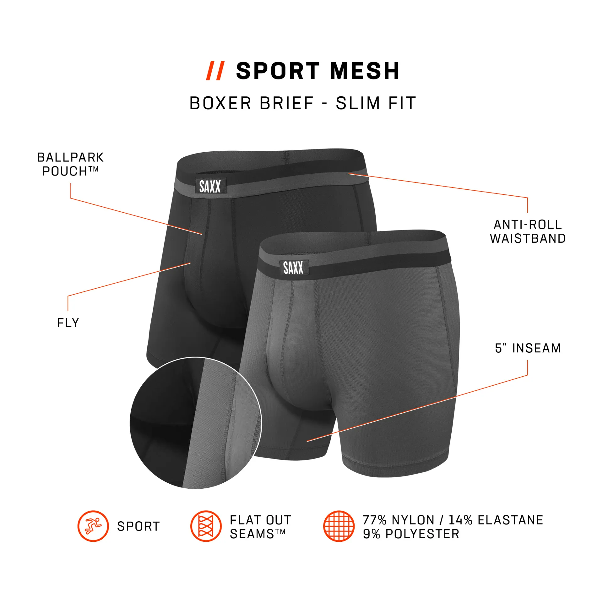 SAXX Mens Sport Mesh Boxer Briefs 2pk Black/Graphite