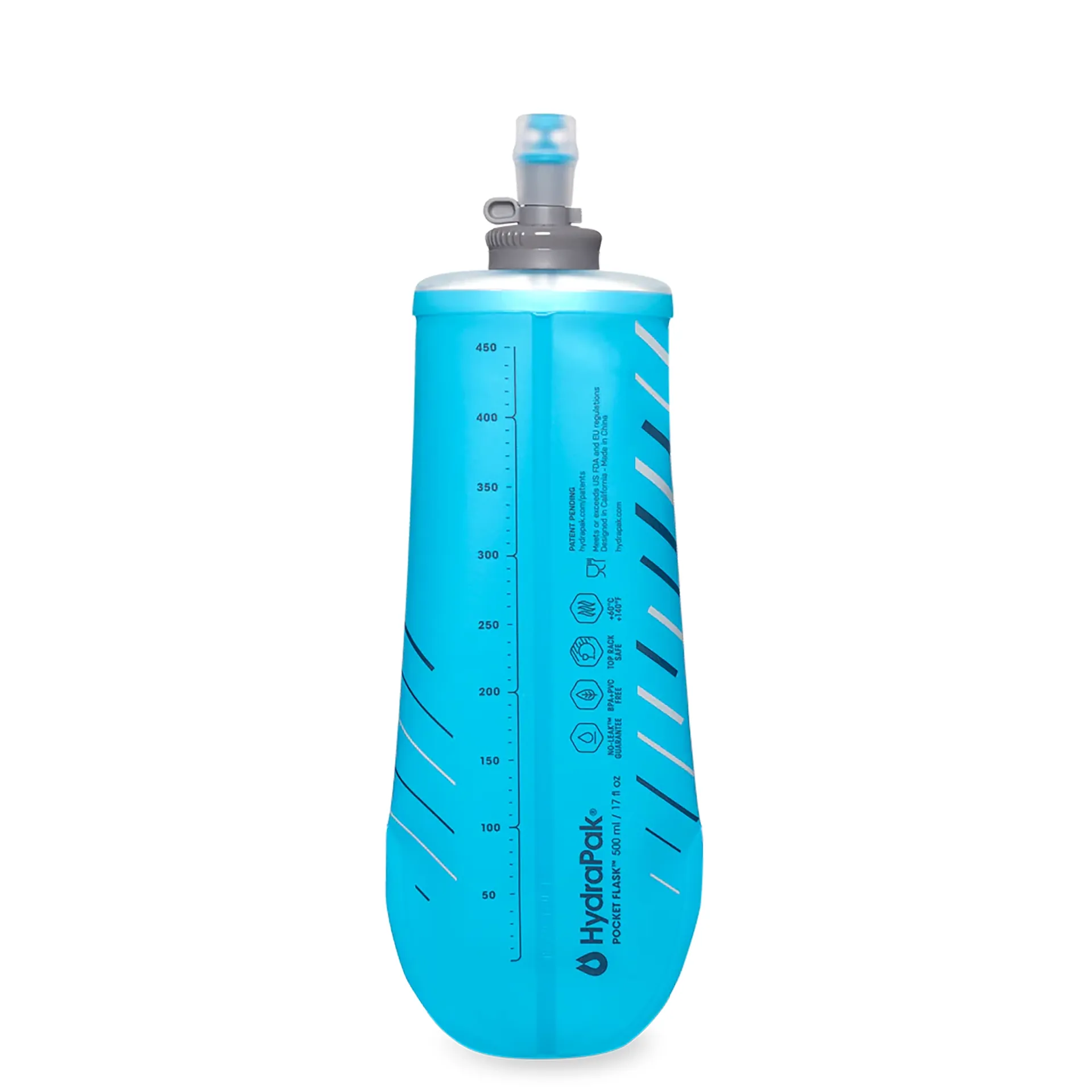 The HydraPak PocketFlask 500ml is engineered with a slim, tapered silhouette that fits seamlessly into the most compact running belts and race vests. Its pinch-welded bottom and low-profile cap eliminate hard edges and pressure points.