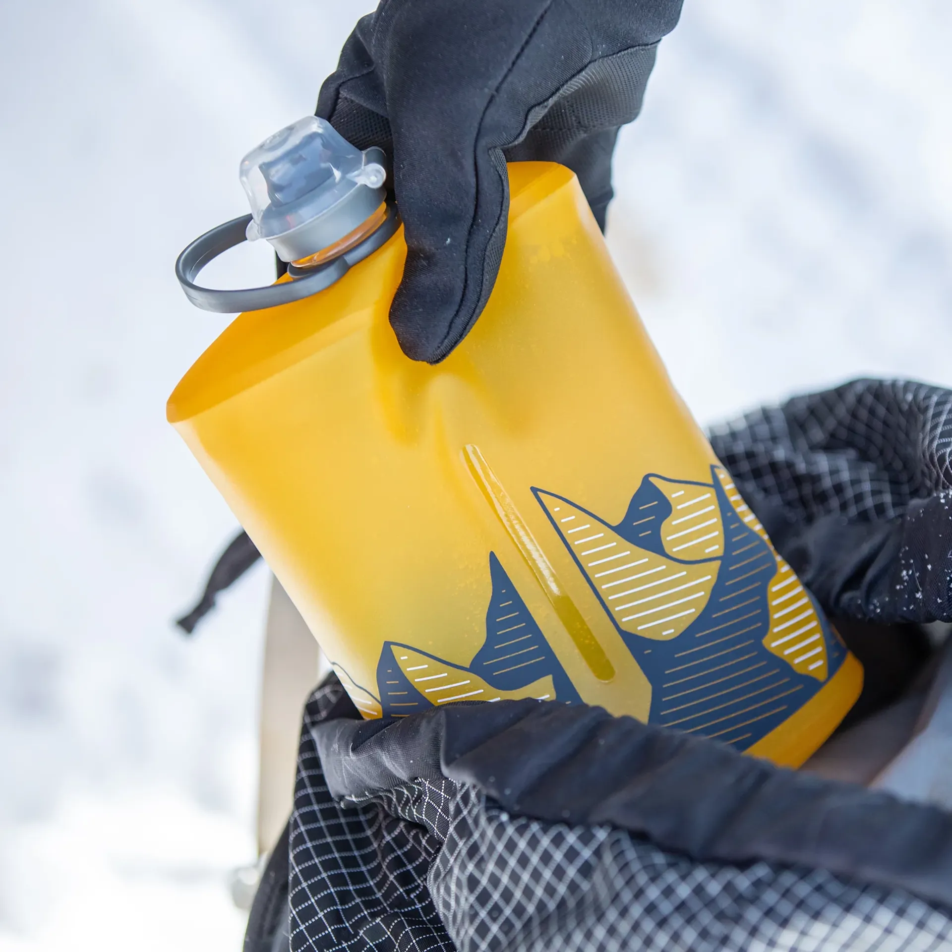 The Stow is constructed from high-quality TPU (thermoplastic polyurethane), a material chosen for its unique balance of flexibility and strength. Unlike rigid bottles that can dent, crack, or retain their shape awkwardly when empty, TPU allows the Stow to compress smoothly and repeatedly without damage. It's highly abrasion-resistant, making it capable of withstanding rugged trail use, pack friction, and repeated squeezing or folding.