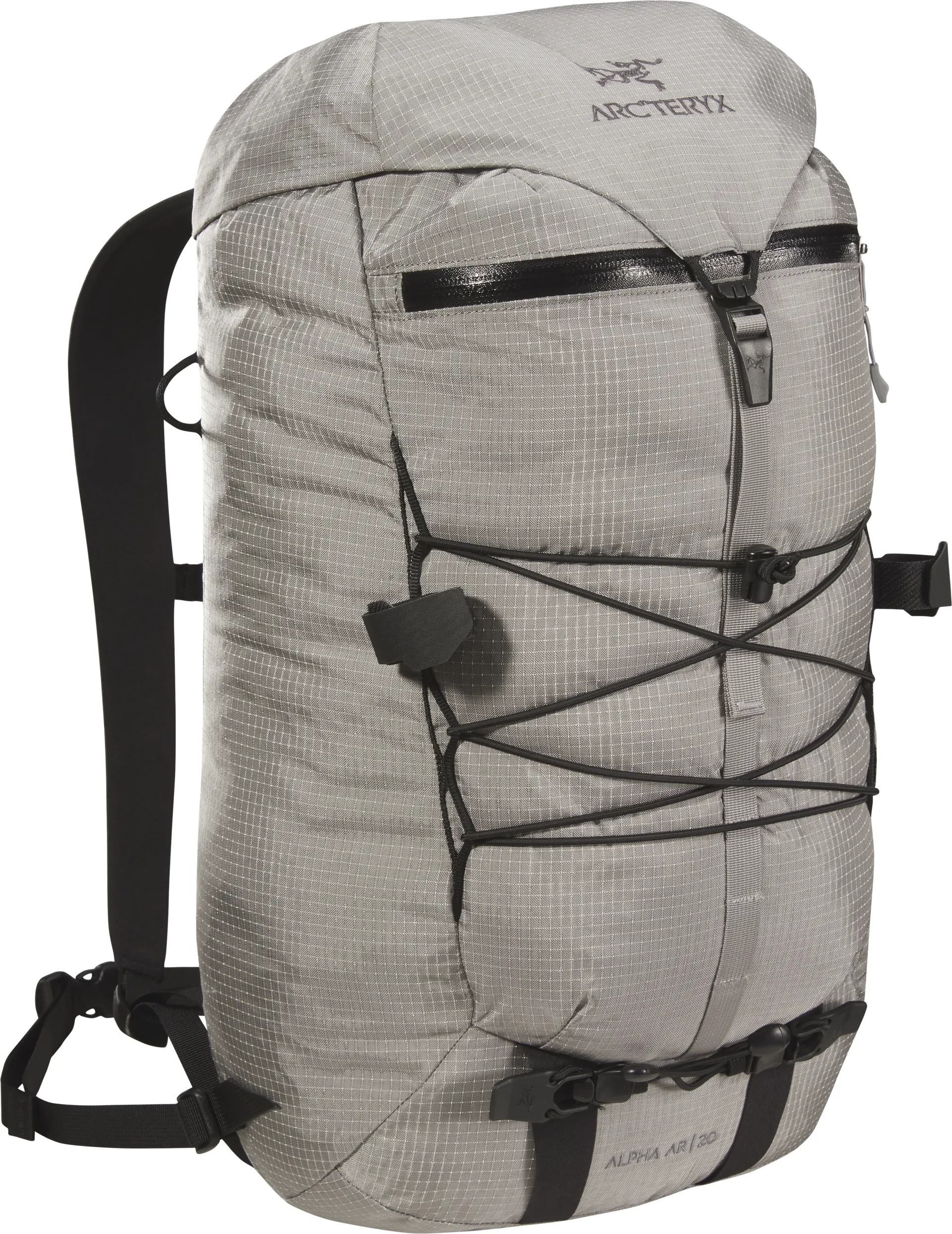 One of the most impressive features of the Alpha AR is the face fabric - the pack is constructed using N315r-LCP which is a high tenacity nylon with a Liquid Crystal Polymer ripstop grid that Arcteryx helped design. You may be familiar with Arcteryx's AC² fabric which is used in the Bora and Alpha FL packs - well this fabric is a new breed and is a staggering 6-7x more abrasion resistant than AC². Basically what this gives you is a face fabric that will not only shrug of most of the weather but is also tough enough to handle long scrambles and being hauled up huge rock faces.