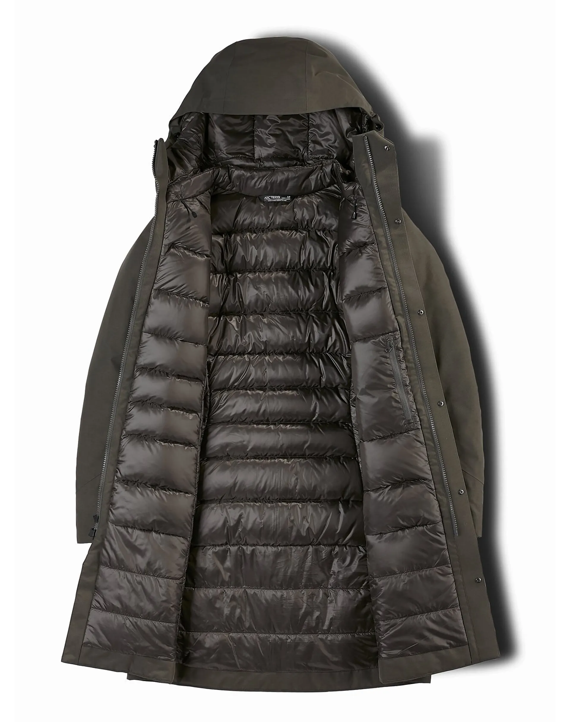 Insulation: Starting from the inside, Arc'teryx equip the Patera with a mixture of Coreloft and 750 fill-power goose down, providing plenty of warmth for cold commutes and trips into town. Areas which are exposed to moisture such as the front of the mouth and under the arms are treated to Arc'teryx's synthetic Coreloft insulation, while the rest of the Patera gets lightweight and super warm goose down.