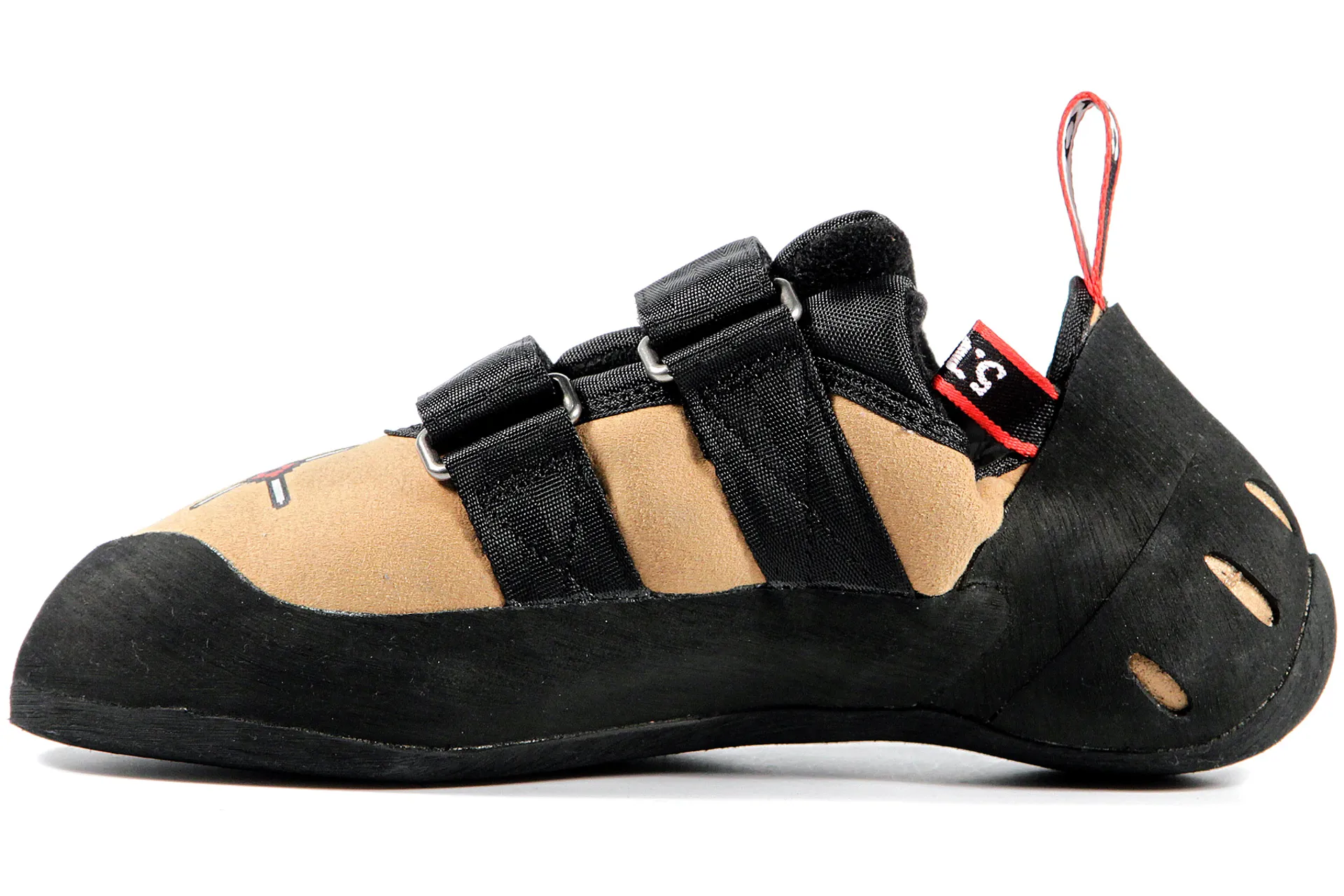 The Velcro straps and soft split tongue not only make this shoe comfortable but also very quick to get on and off. The sole and toe rand are made from Five Ten's special Stealth XX rubber.