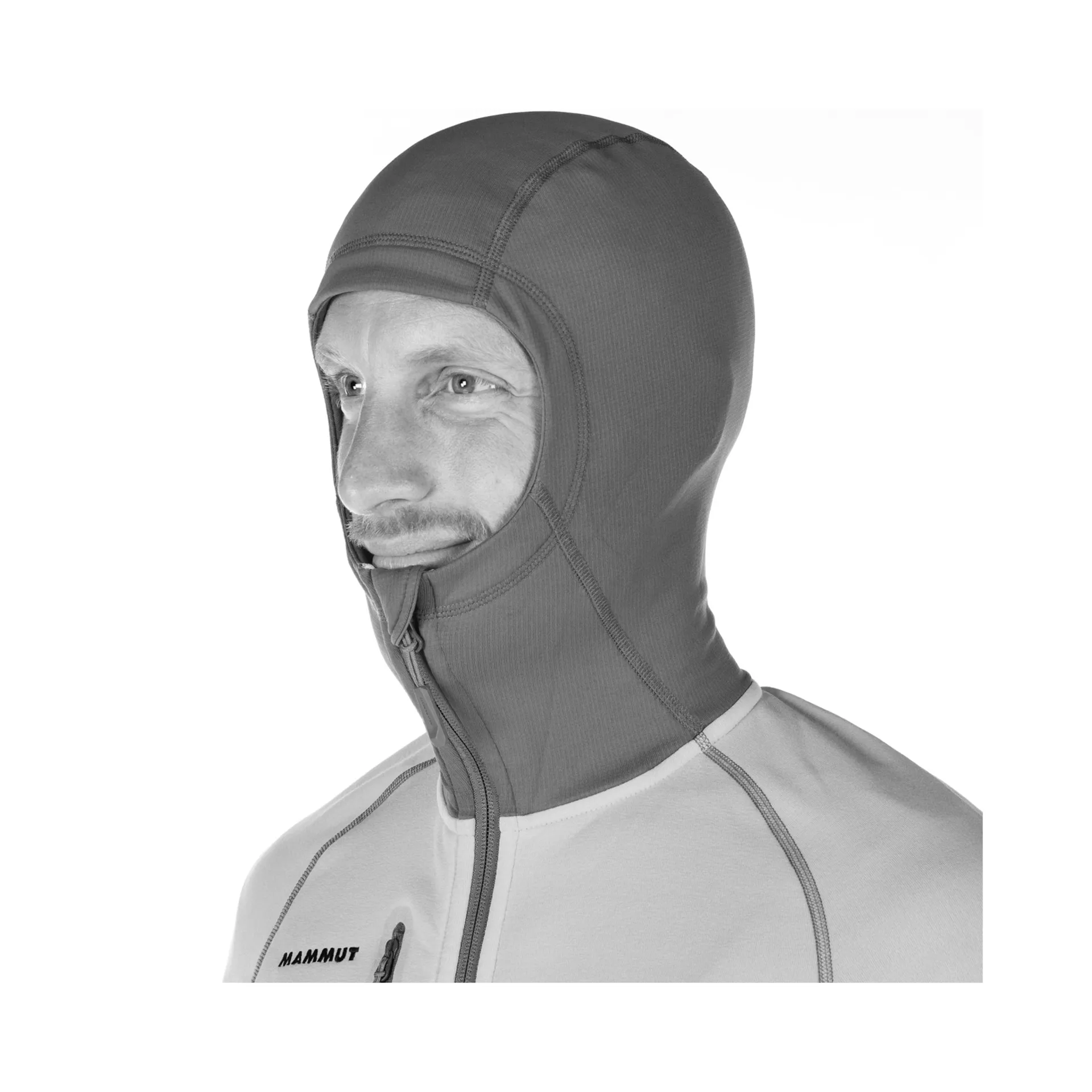 This new hooded fleece mid-layer from Mammut is made from a combination of two different weights of Polartec Power Stretch Pro fabrics. Power Stretch Pro differs from standard Power Stretch by having an incredibly tough and abrasion resistant nylon face fabric, the standard fabric uses a polyester face fabric which will not stand up to rigorous use and wear and tear from packs or harnesses.