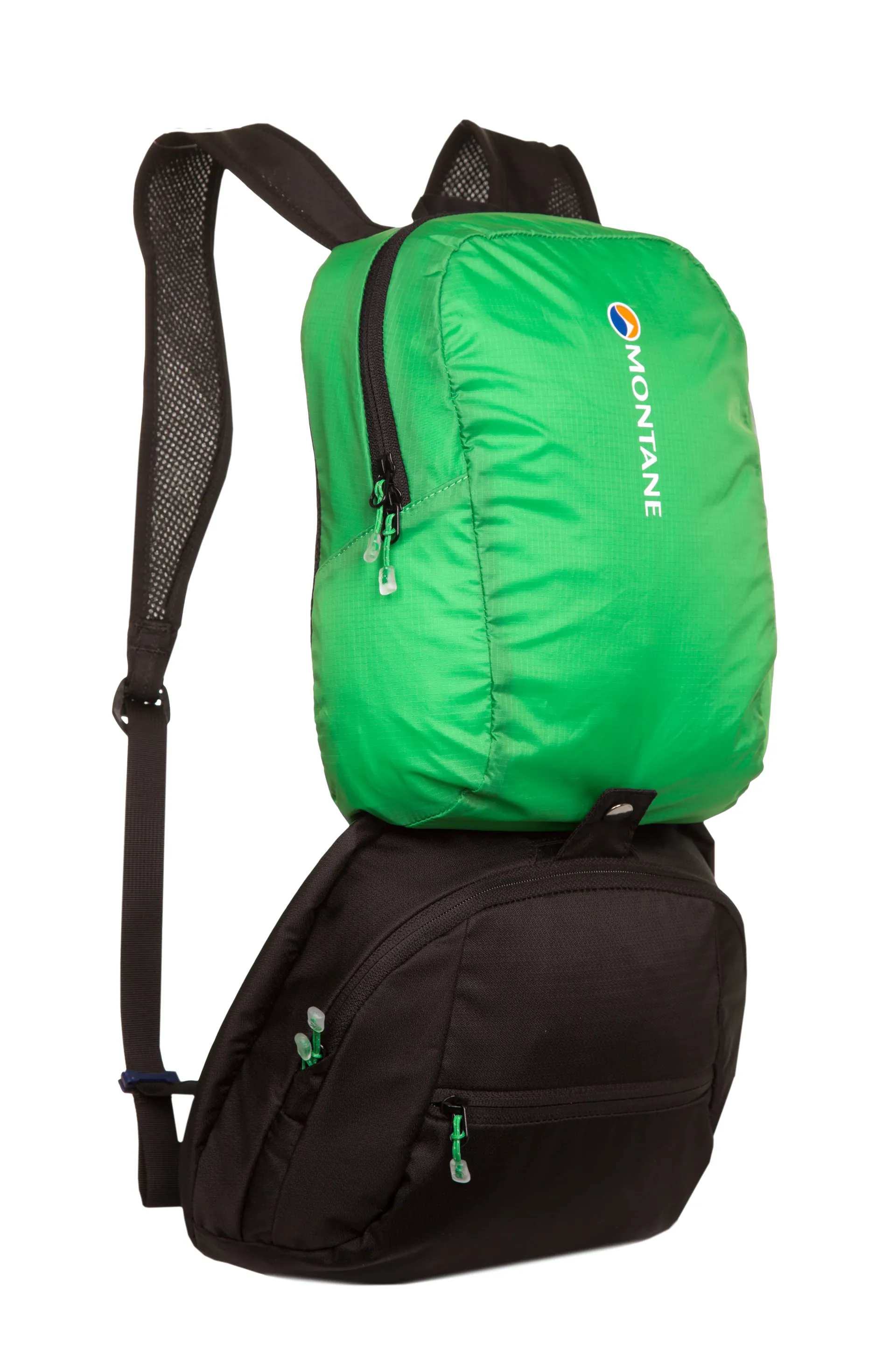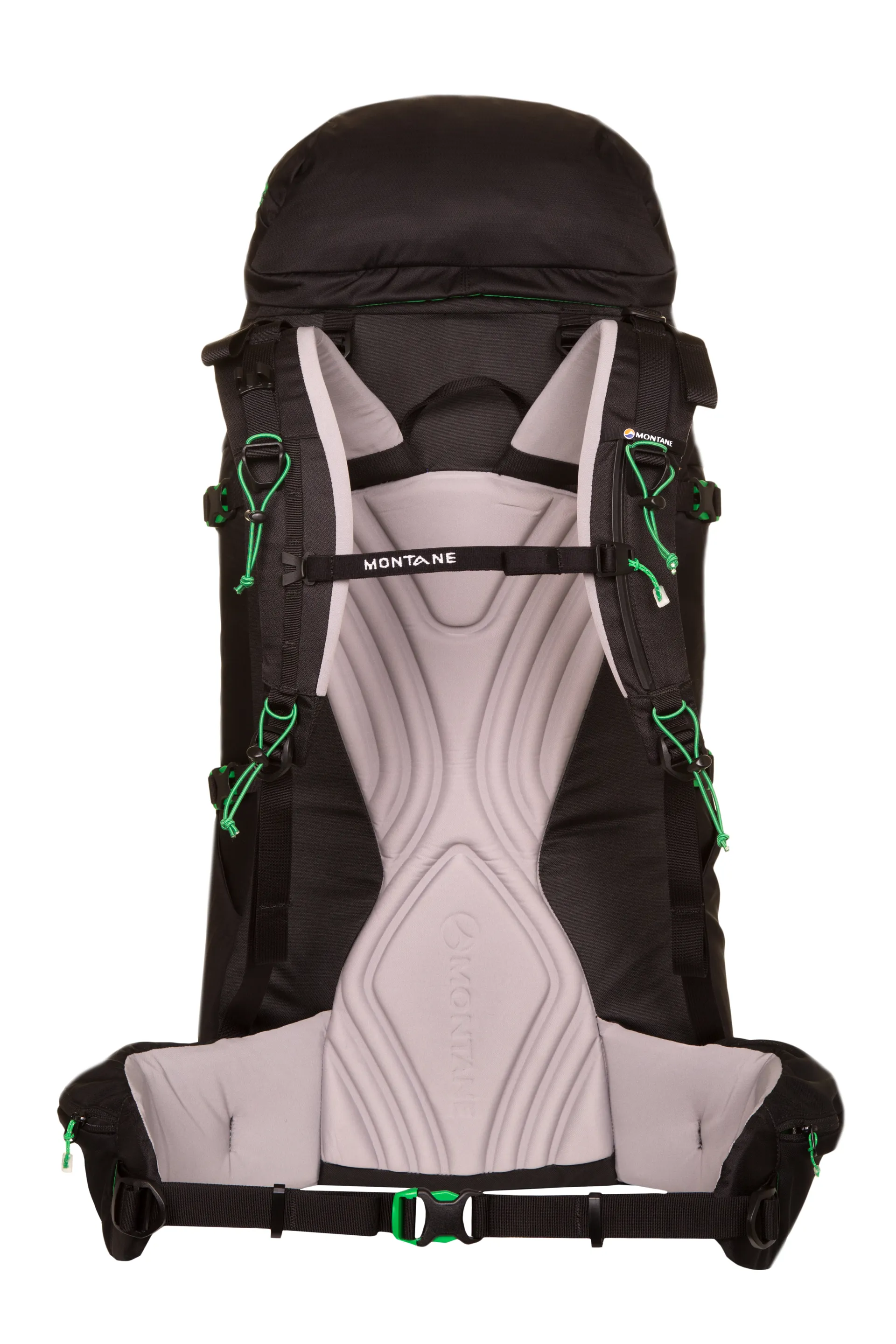 The heart of any decent pack is the back system, a pack can have all the bells and whistles but if the carrying system is not up to the job then it will be uncomfortable at best and unsafe at worst. Montane have used a simple, yet highly effective, aluminium internal frame called VertErgo (corny designer title) that provides strength, comfort and support for load carrying over long distances. This extremely lightweight back system can be removed for additional ultra weight saving and can also be shaped (bent) to fit the user’s back. The special pre-curved horizontal aluminium bar across the top of the ‘VertErgo Tour’ back panel provides structure for top tension straps to torque off. Contact areas and the carrying harness (shoulder straps and hip belt) are all covered with a a fine mesh to prevent abrasion on waterproof clothing and to wick moisture for quick drying. A moulded "Comfort Back Pad", rather unsurprisingly, provides comfort for your back and features channels that wick sweat and rainwater away from your body and provides extra ventilation. Body curve hip belt fins are specially shaped to provide superb comfort and stability and the double tension waist harness really locks the belt onto your hips for perfect weight equalisation and stability.