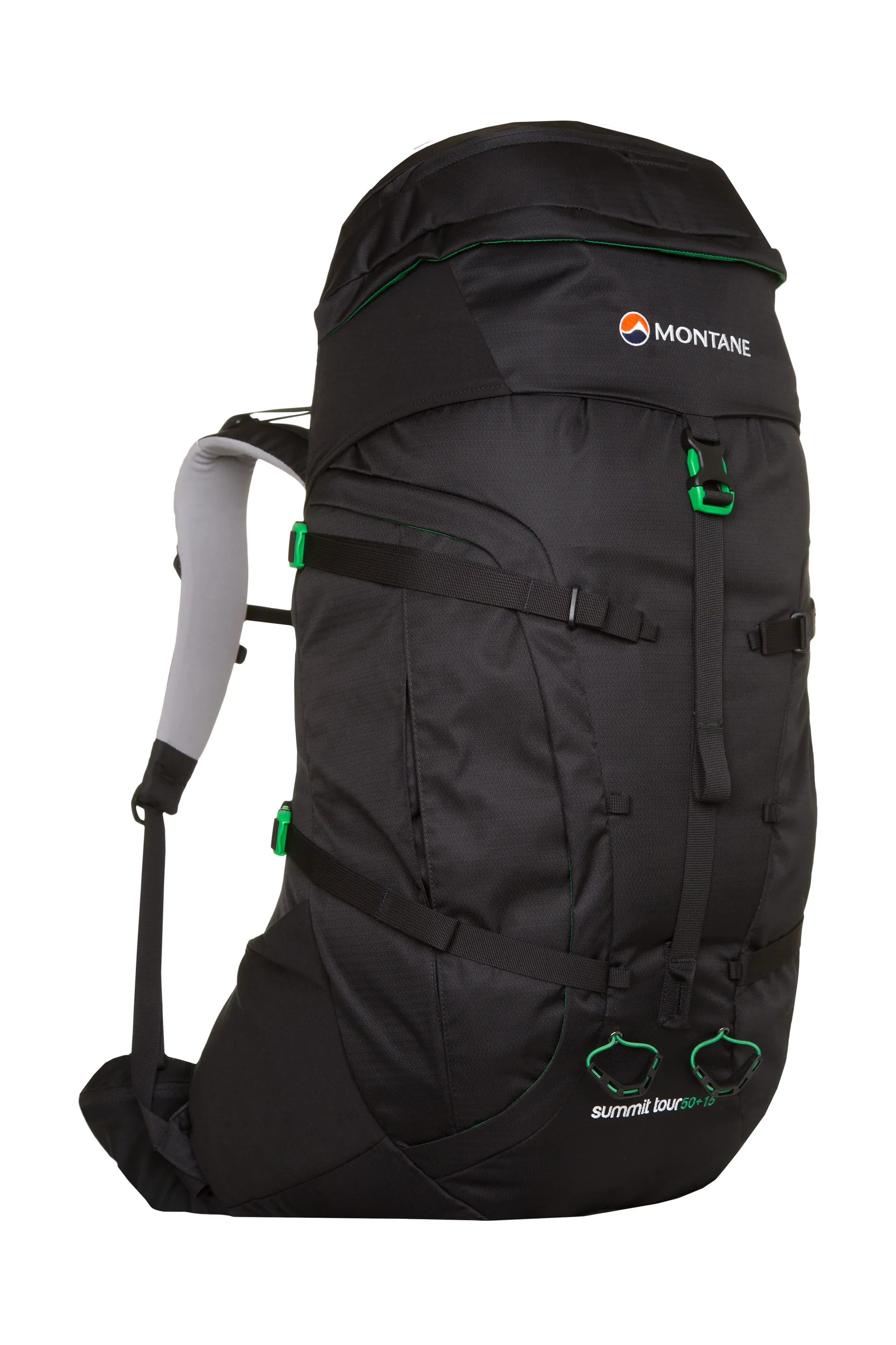 Aptly named, The Summit Tour is made from Montane's own RAPTOR TL fabric, a tough yet lightweight nylon fabric that resists abrasion, has a durable water repellent treatment and a hydrostatic head of 1000mm. This tough fabric is then reinforced at the base of the pack with RAPTOR UTL, a 500D nylon that is super strong and abrasion resistant to protect the vulnerable area of the pack. A third lightweight and stretchy fabric is used on the sides of the lid to ensure a clean fabric hugging closure that keeps the lid tightly sealed over the top of the pack.