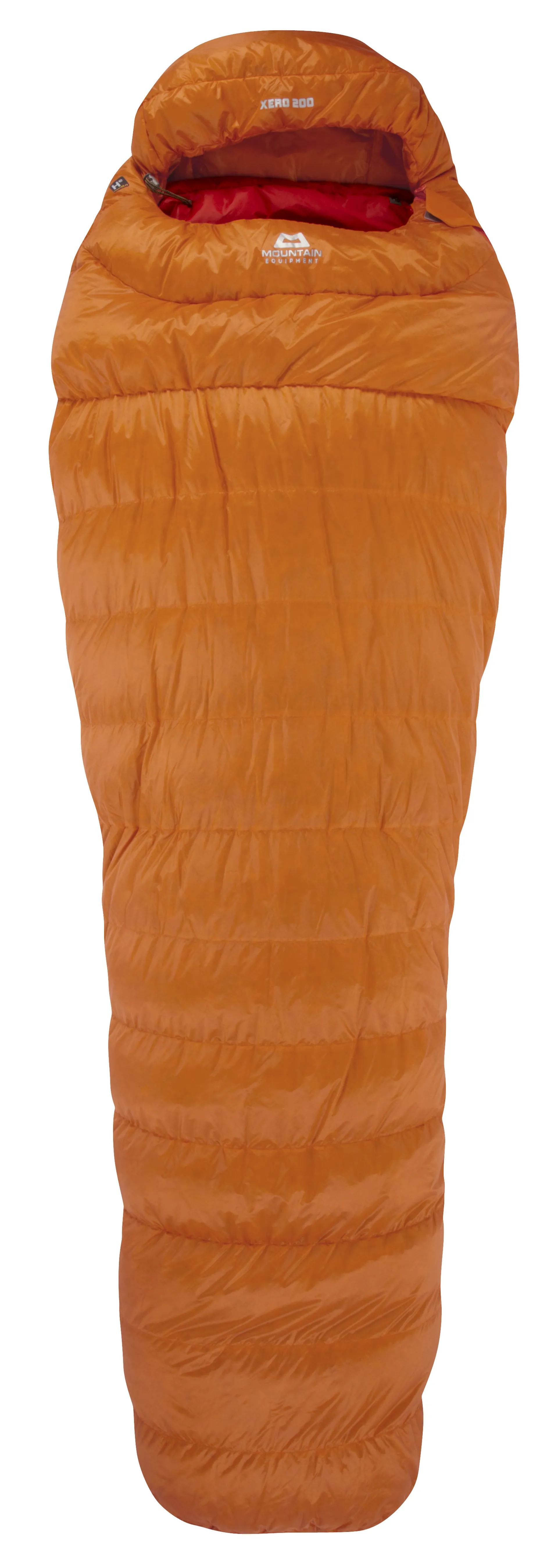 The Xero 200 is constructed with Helium fabric which is an exceptionally light, compressible and durable fabric. The densely woven fibres ensure the highest levels of down proofing, wind resistance and heat loss to fully maximise the insulation. To further increase the Xero's performance M.E have used their EXL technology inside the sleeping bag, a technology that was first introduced by Mountain Equipment in 1989 and was designed to optimise warmth and maximise the loft of the down. This simple but ingenious technology uses elasticated stitching in the lining of a product that adds no discernible weight but minimises dead airspace around the body and pulls fabric away from the down allowing it to loft to full effect. This has a marked benefit on performance and extensive testing shows that sleeping bags with EXL will be around 2°C warmer than one without it. Whilst sounding like a marginal gain 2°C represents a significant benefit at the lower end of a bags performance range. This can be the difference between recovering and merely surviving whether on long expeditions or a fast moving alpine climb.