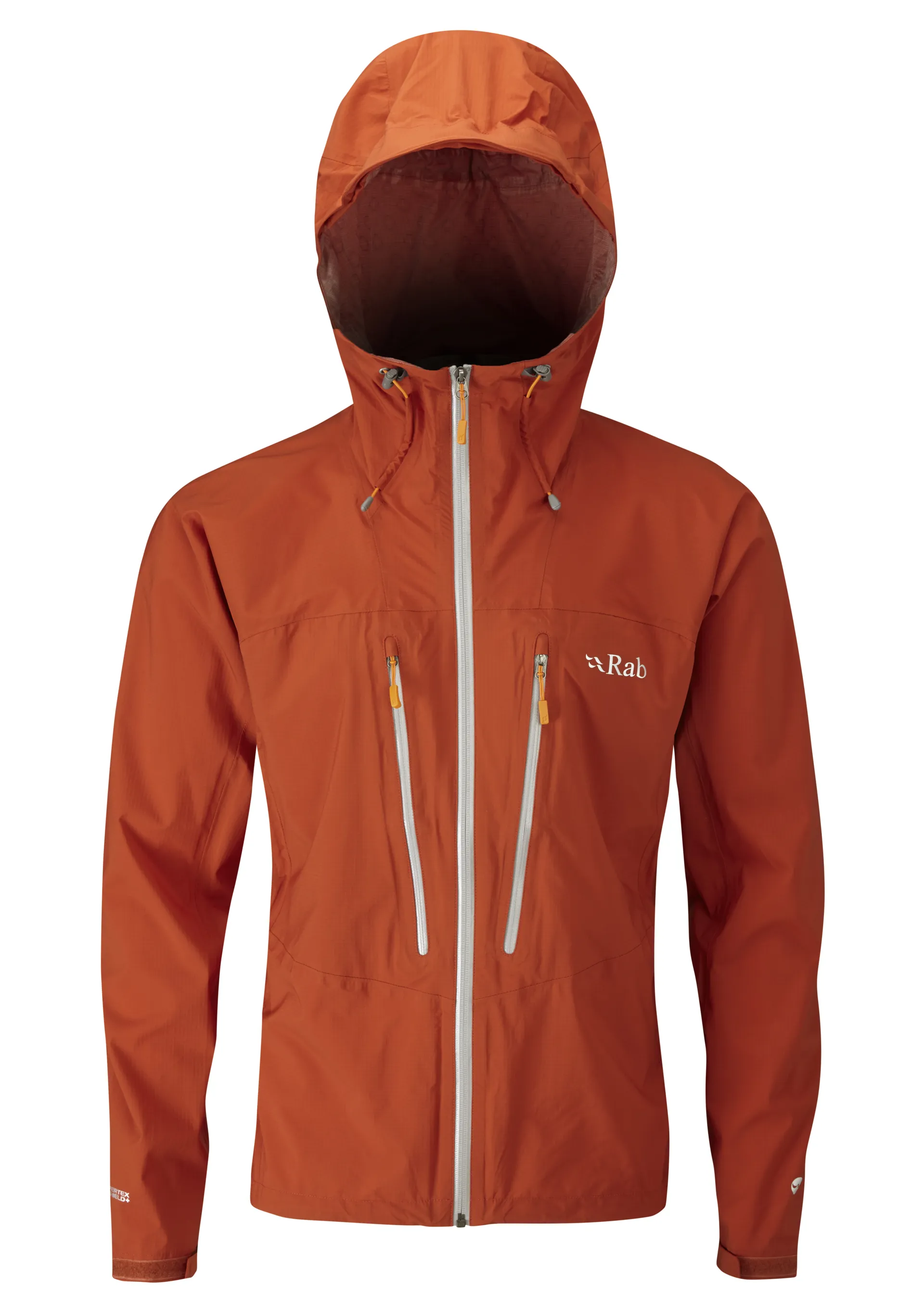 This supremely lightweight, fully waterproof and breathable mountain jacket is made using stretchy Pertex Shield+ fabric. Pertex are a world leader in fabric technology and have worked closely with Rab to develop this high performance fabric with a hydrostatic head of 16,000 mm, which basically means it's VERY waterproof. Pertex Shield also provides high levels of breathability with a MVTR of 20,000 (Gore-Tex Pro for example has a MVTR of around 28,000).