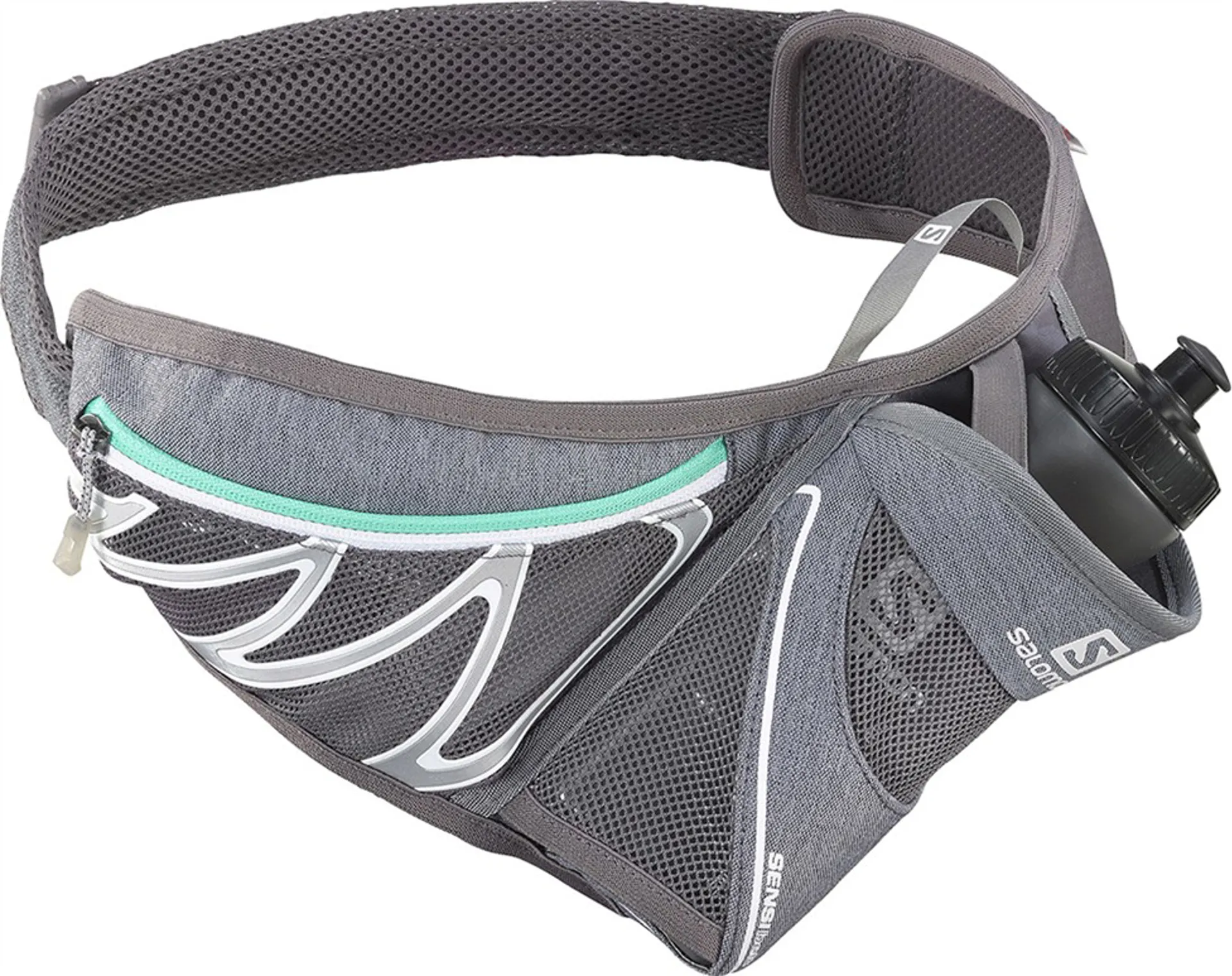 The Salomon Sensibelt has got to be the most comfortable water bottle carrier/waist belt I have ever used. The stretchy Sensifit belt uses Velcro instead of the usual hard buckles so there is nothing digging into your stomach when you are running or hiking. The Velcro also allows for massive adjustment, so it's easy to get the belt comfortable even over bulky clothing.