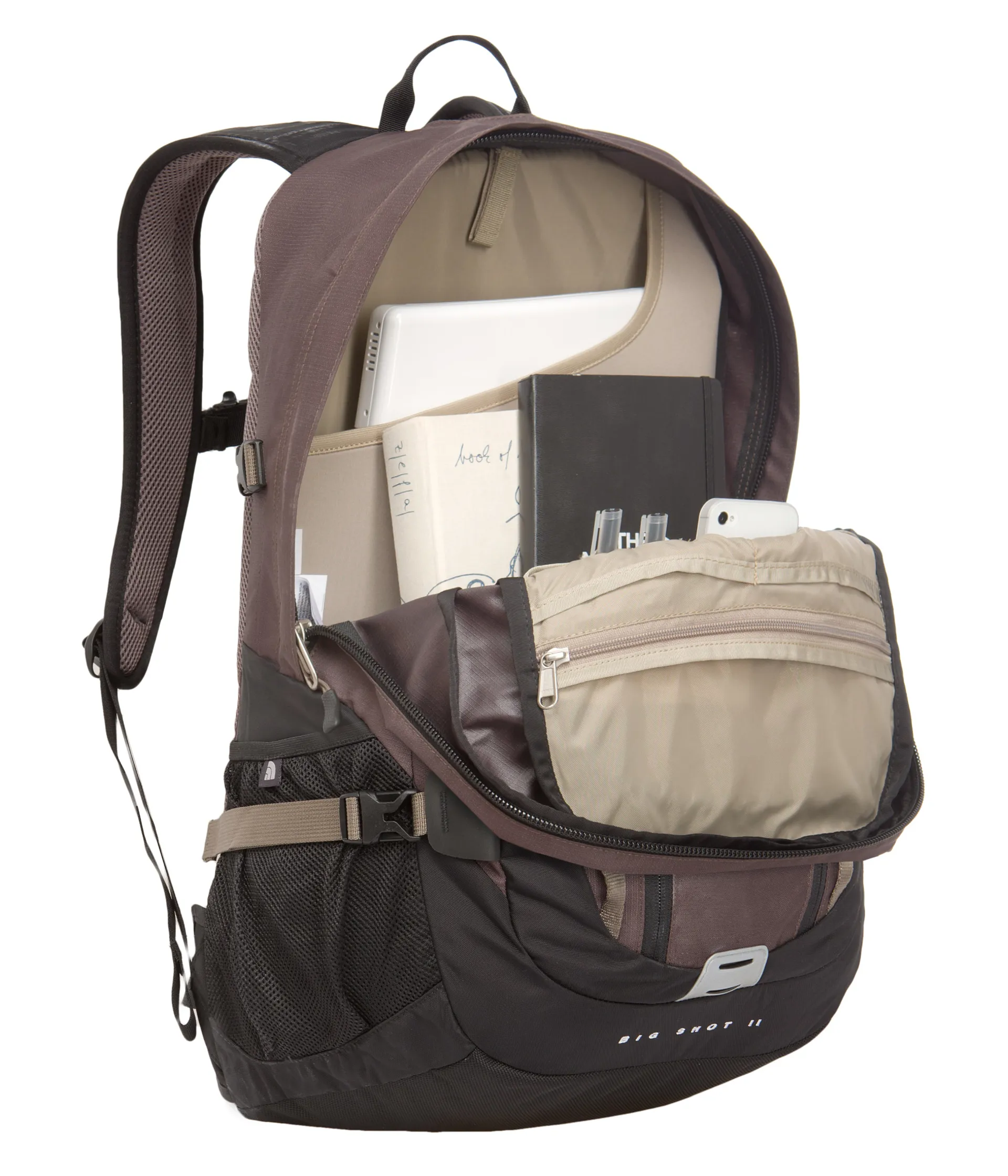 Large main compartment with padded variable laptop sleeve, organizer panel and hydration port.