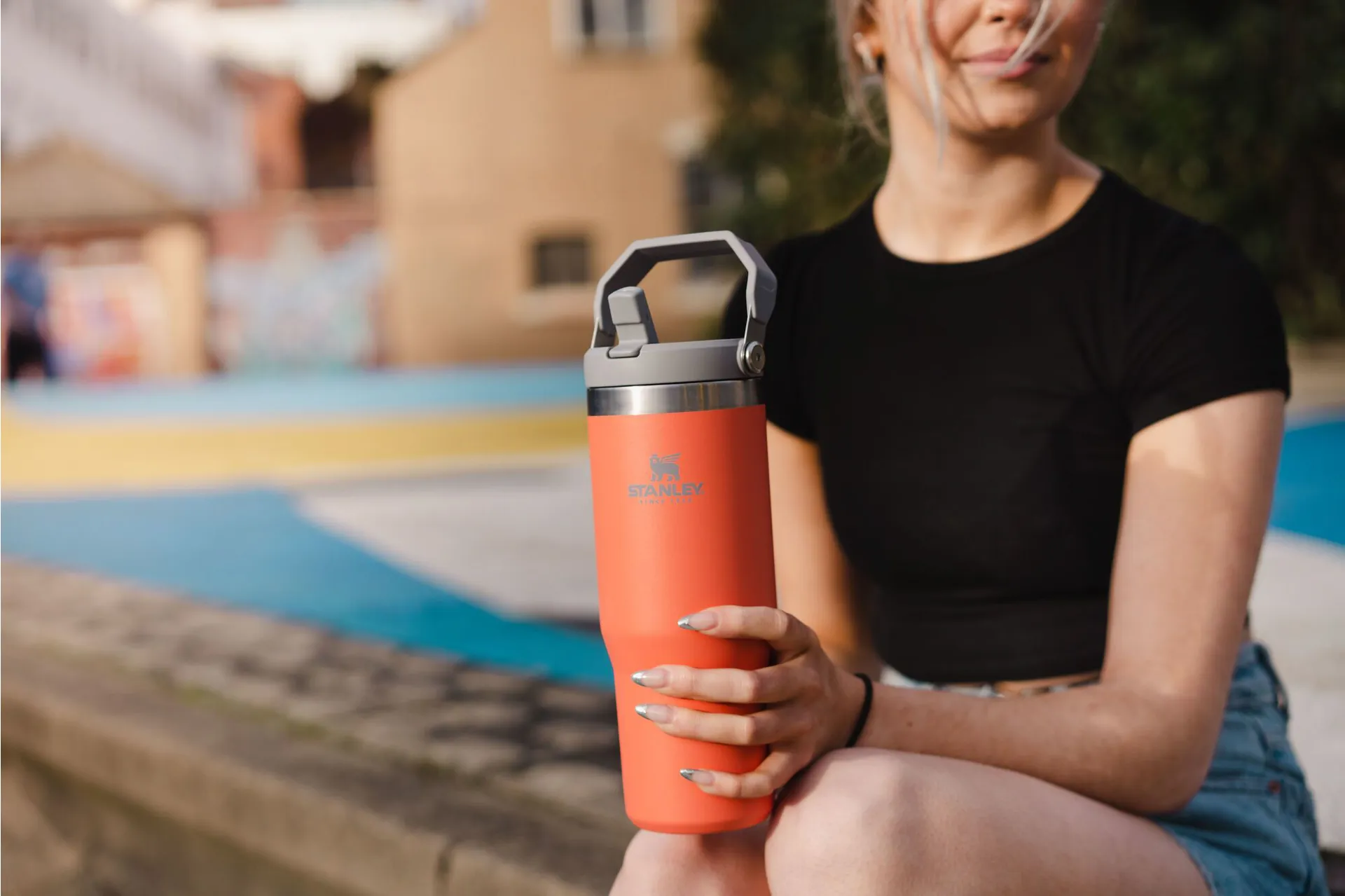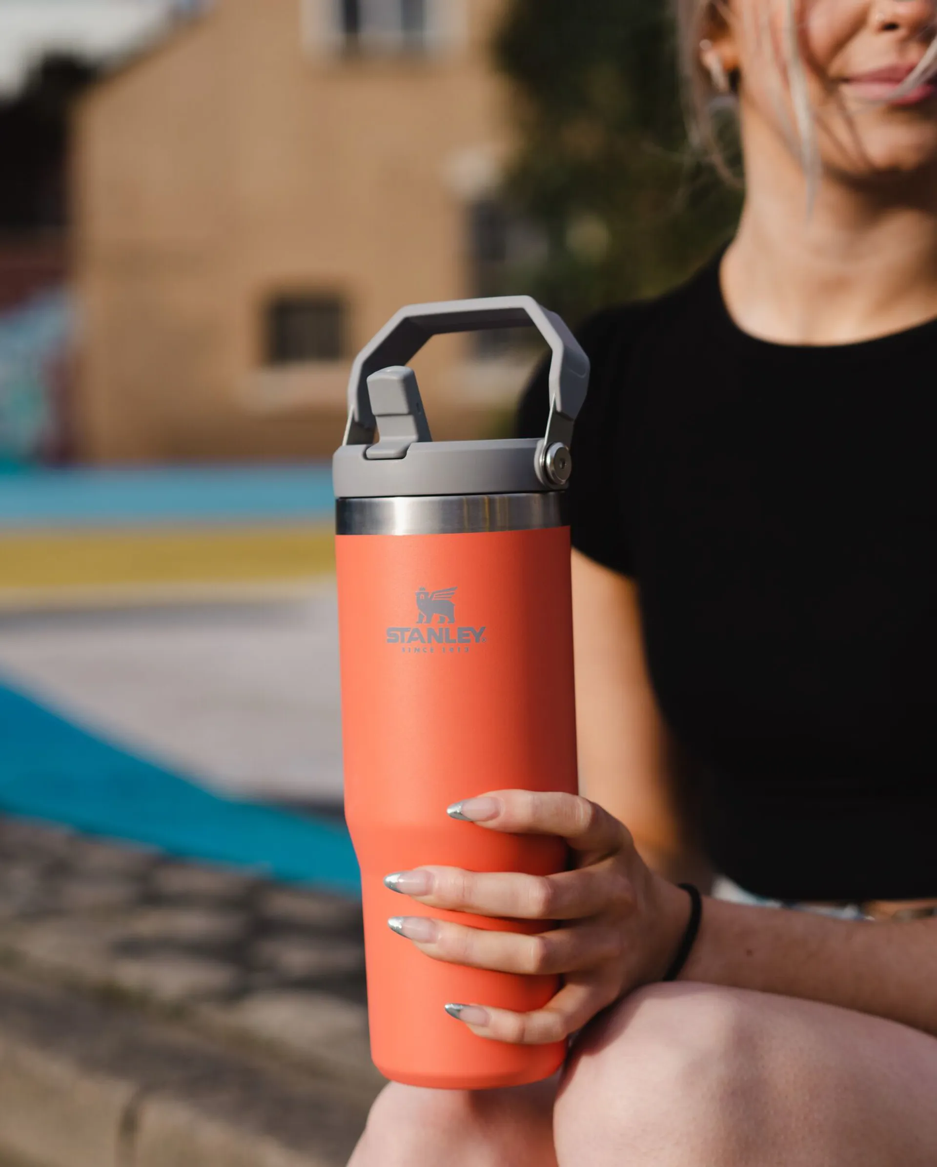 The bold and colorful Stanley IceFlow™ Flip Straw Tumblers are made to keep you hydrated in a fully functional style. Ideal for commutes or workouts, it has a built-in flip straw for easy and effortless sipping. Snap it shut and the double-wall vacuum insulation will keep your drink fully leakproof and cold for 12 hours, iced for 48 hours. It fits comfortably in your car or bike cup holder of treadmills and spin cycles, too! The folding handle lets you quickly grab and go. To help keep your life easy, the IceFlow™ Tumblers are designed to clean easily. Every piece of this stainless steel water bottle is dishwasher safe.