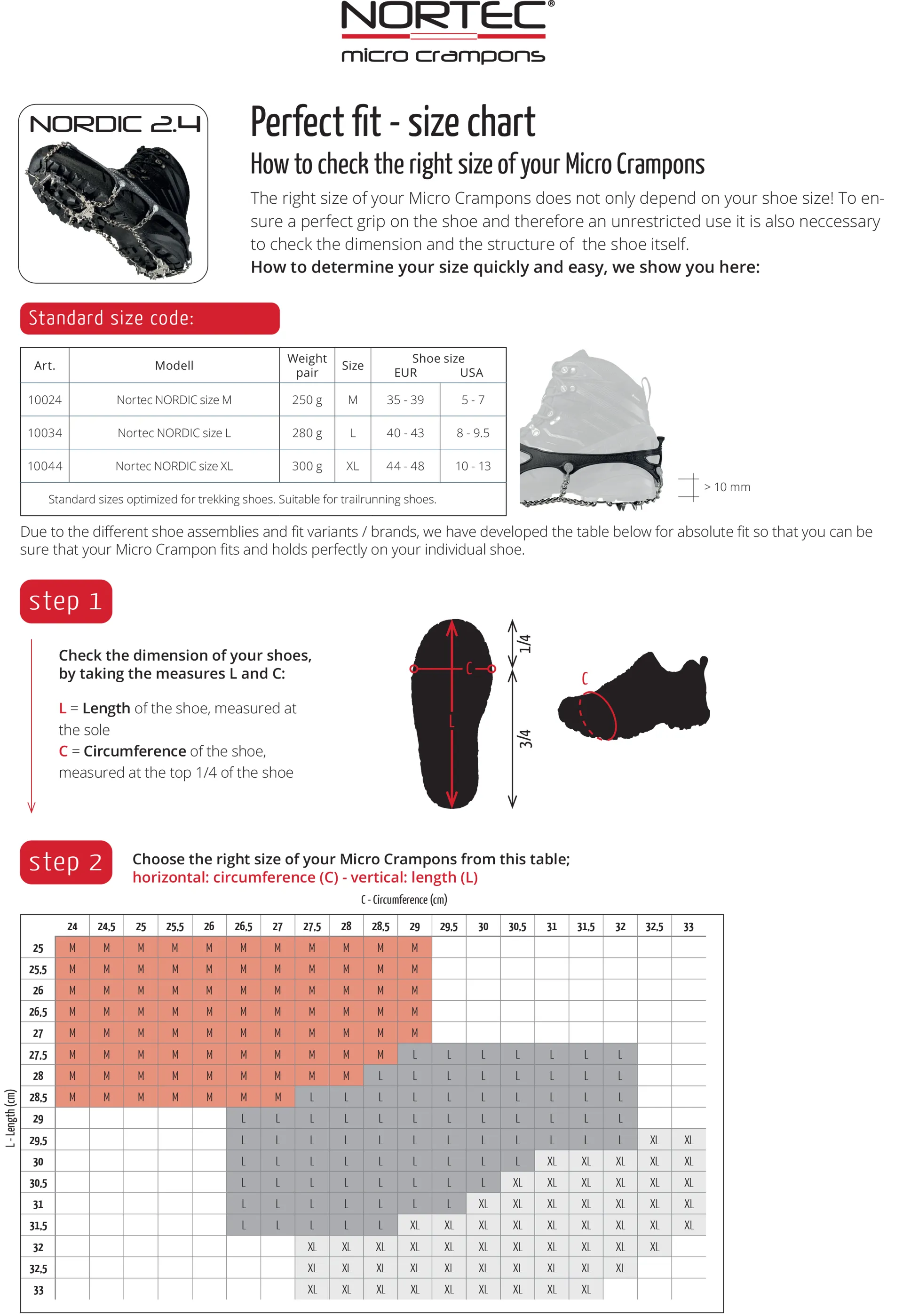 They have a hi-tech silicone elastomer frame, tested up to -60°c, to ensure maximum performance in extreme temperatures. The elastomers elastic properties allow the shape to bond well to any trail shoe, providing a comfortable fit and perfect positioning of the crampon.