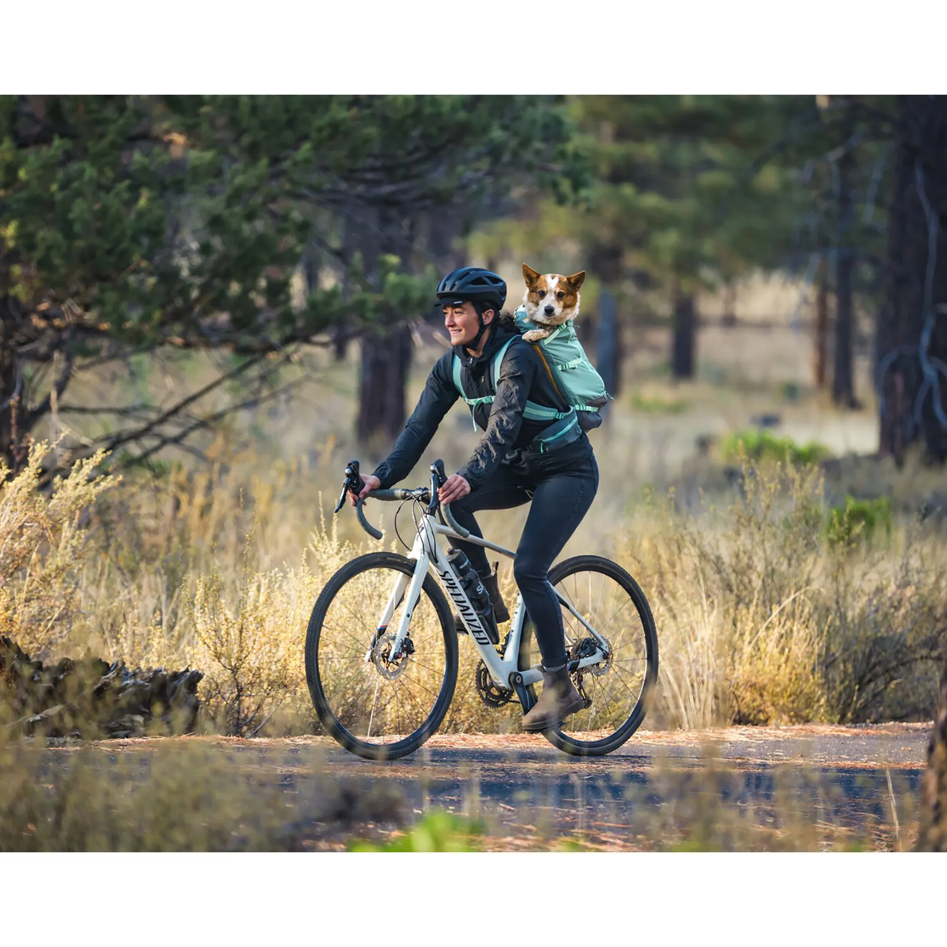 Finally, reflective trims offer added visibility in low-light conditions for added road safety - perfect for bike commutes. There is also a gear loop perfect for Ruffwear's The Beacon™ light (sold separately) to be securely attached, should you wish to further enhance your dog's visibility in the dark.