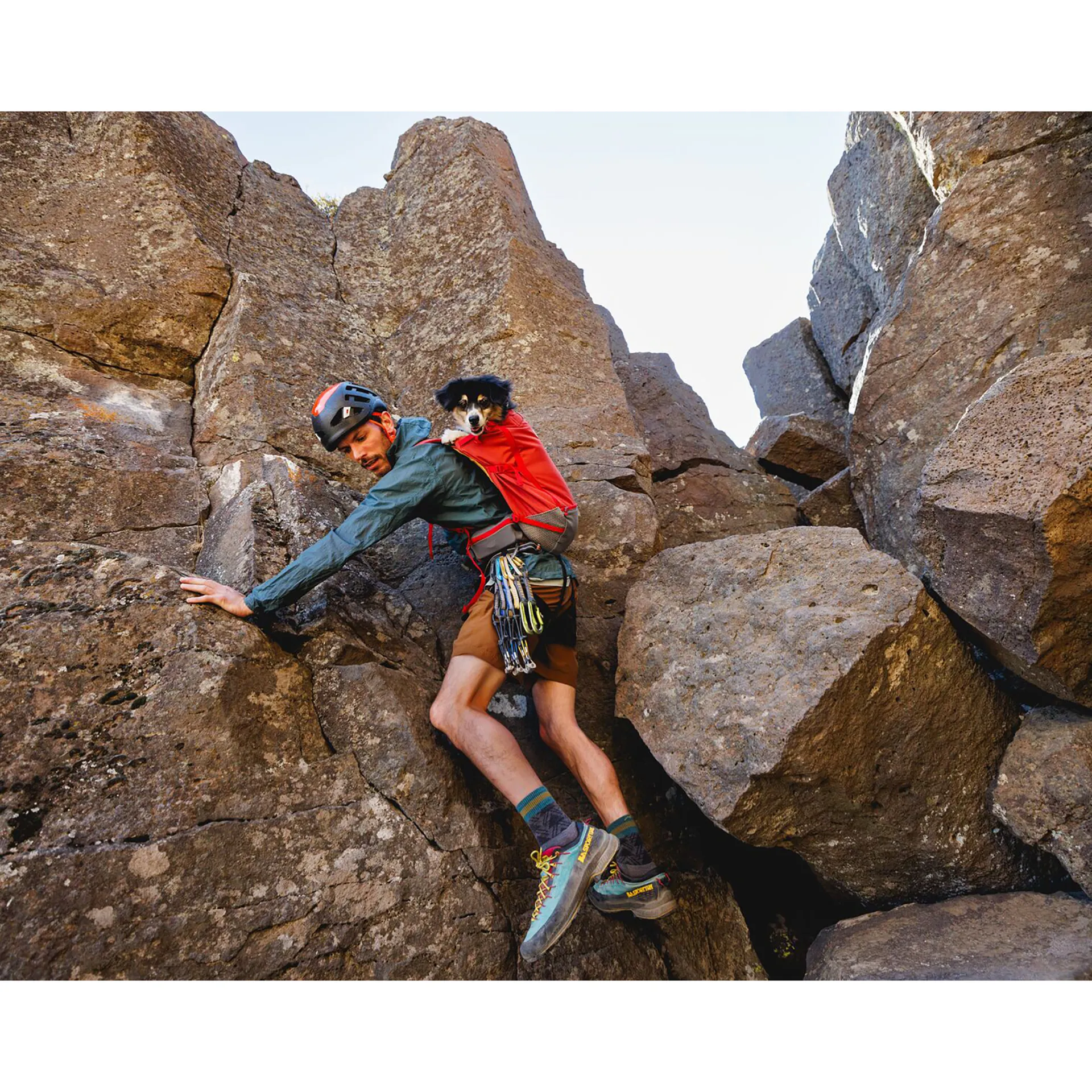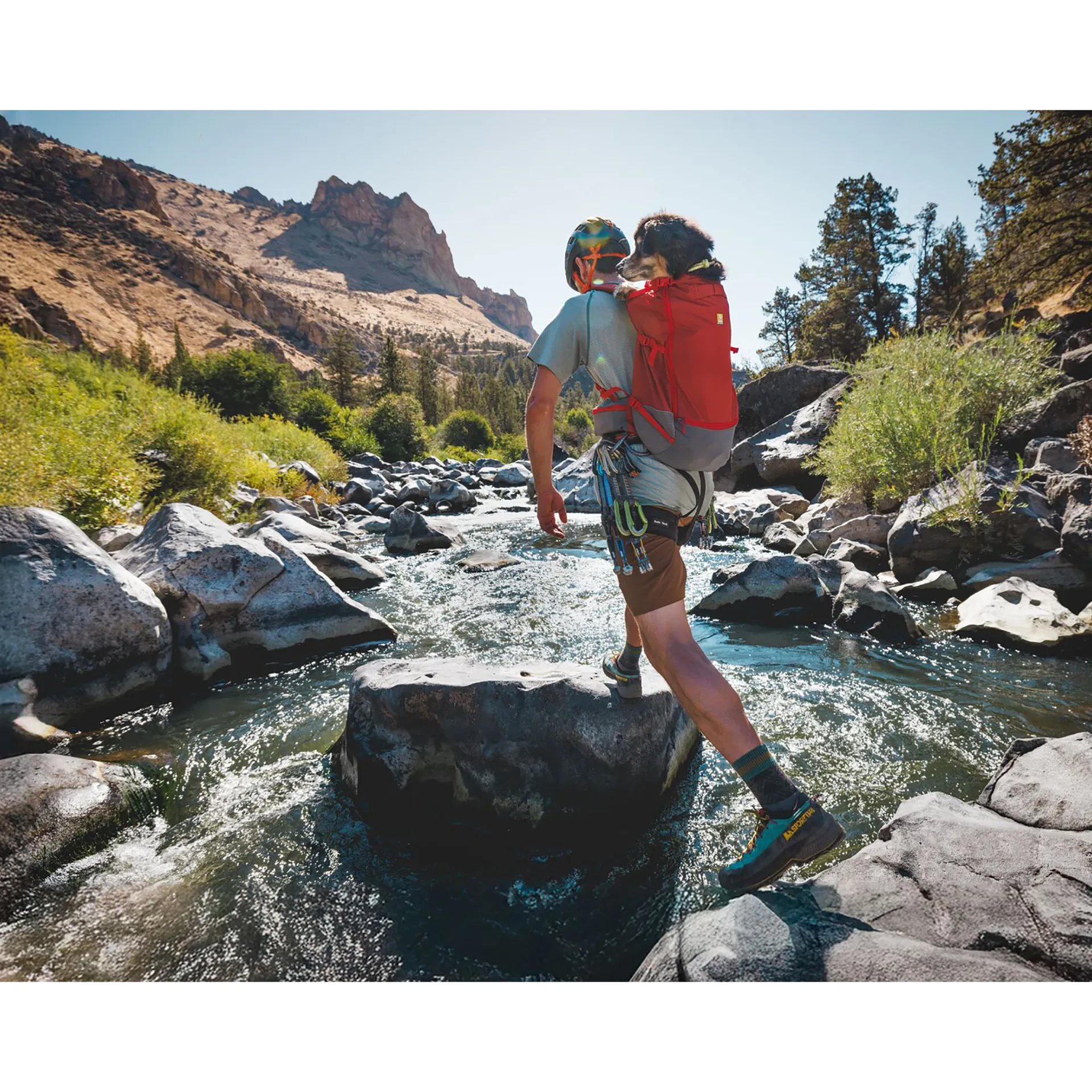 It's a lightweight, technical backpack for easily and safely carrying your dog on your back, so you can enjoy all your adventures together, whether hiking, biking or carrying your dog into technical terrain. Comfortable and breathable, it's perfect for smaller dogs who aren't up to long distances, ageing dogs and those with limited mobility who still want to get outside and explore!