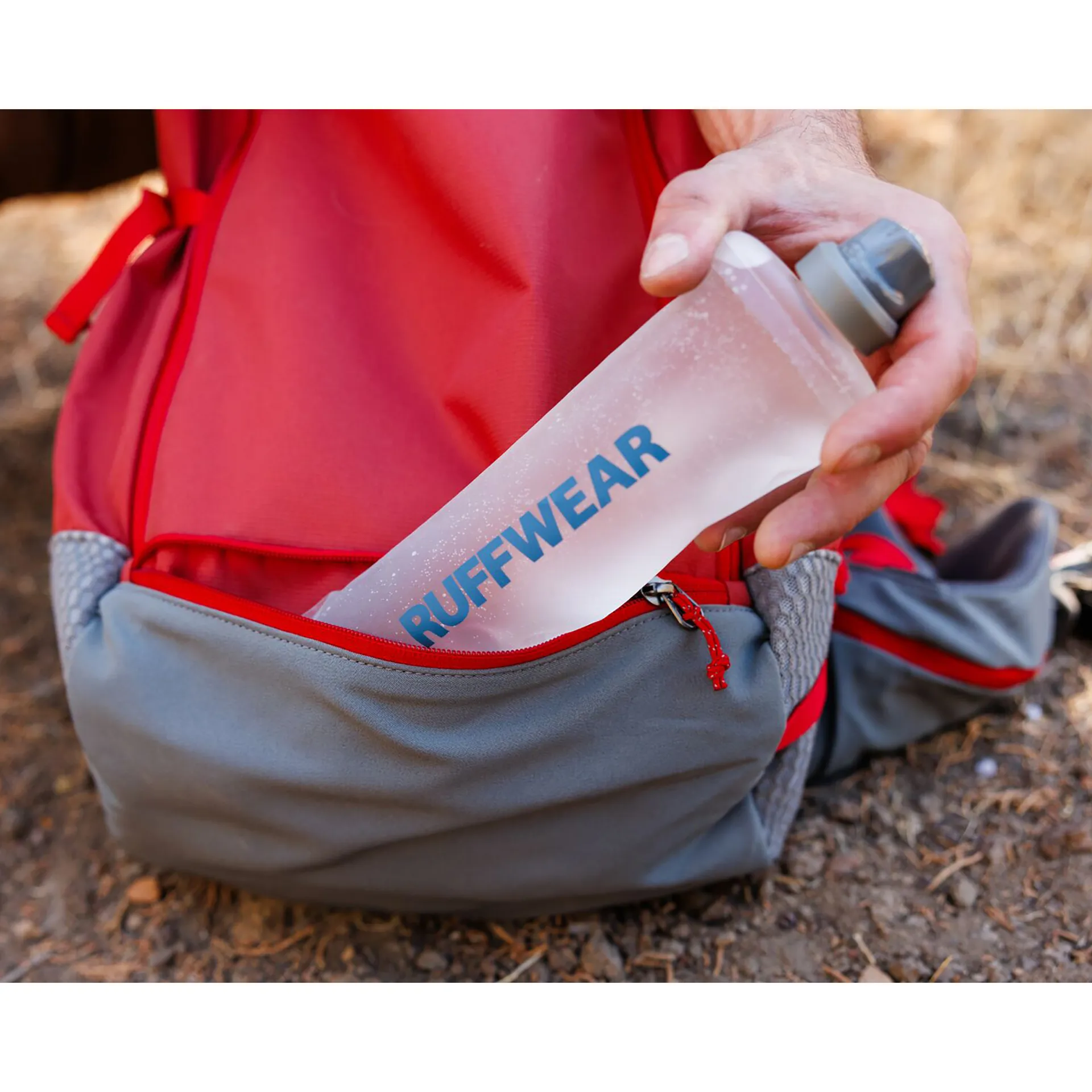 For storage, there are two zippered hipbelt pockets, ideal for keeping your dog's daily essentials such as treats, mess bags and snacks, easily accessible. There is also a zippered external stretch pocket on the bottom of the pack, ideal for keeping a soft flask up to 500ml and a packable bowl, for easy hydration for your furry best friend when it's time to hop out.