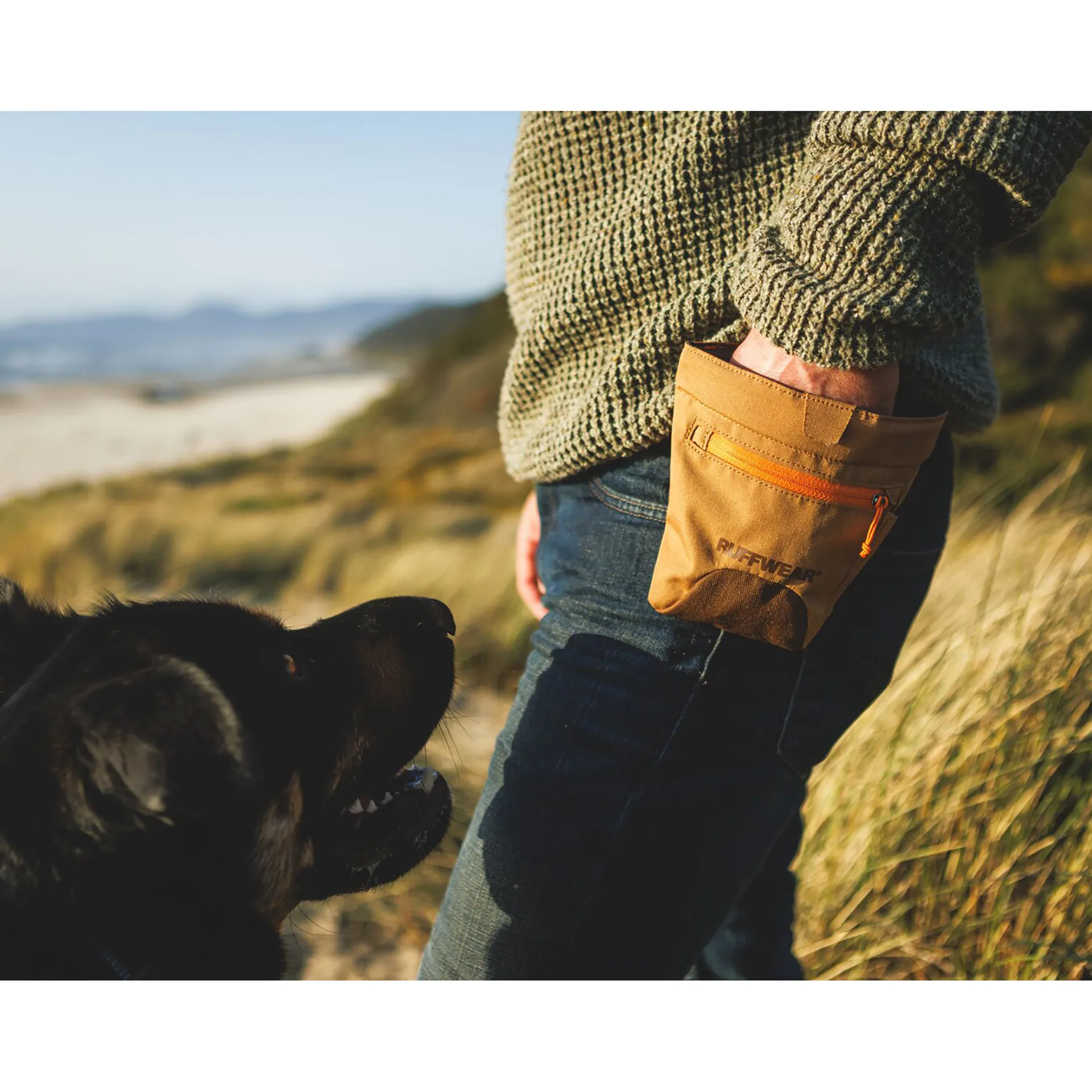 An adjustable waist belt helps you get the perfect fit, so it won't slip around or down, if you're playing various games with your dog or hopping a turnstile in the countryside. There is also an integrated belt loop, should you wish to clip it directly to your waistband instead. The pouch features a moldable rim for an ergonomic shape so it sits closer to your waist, helping to stop it from getting in the way as you move.