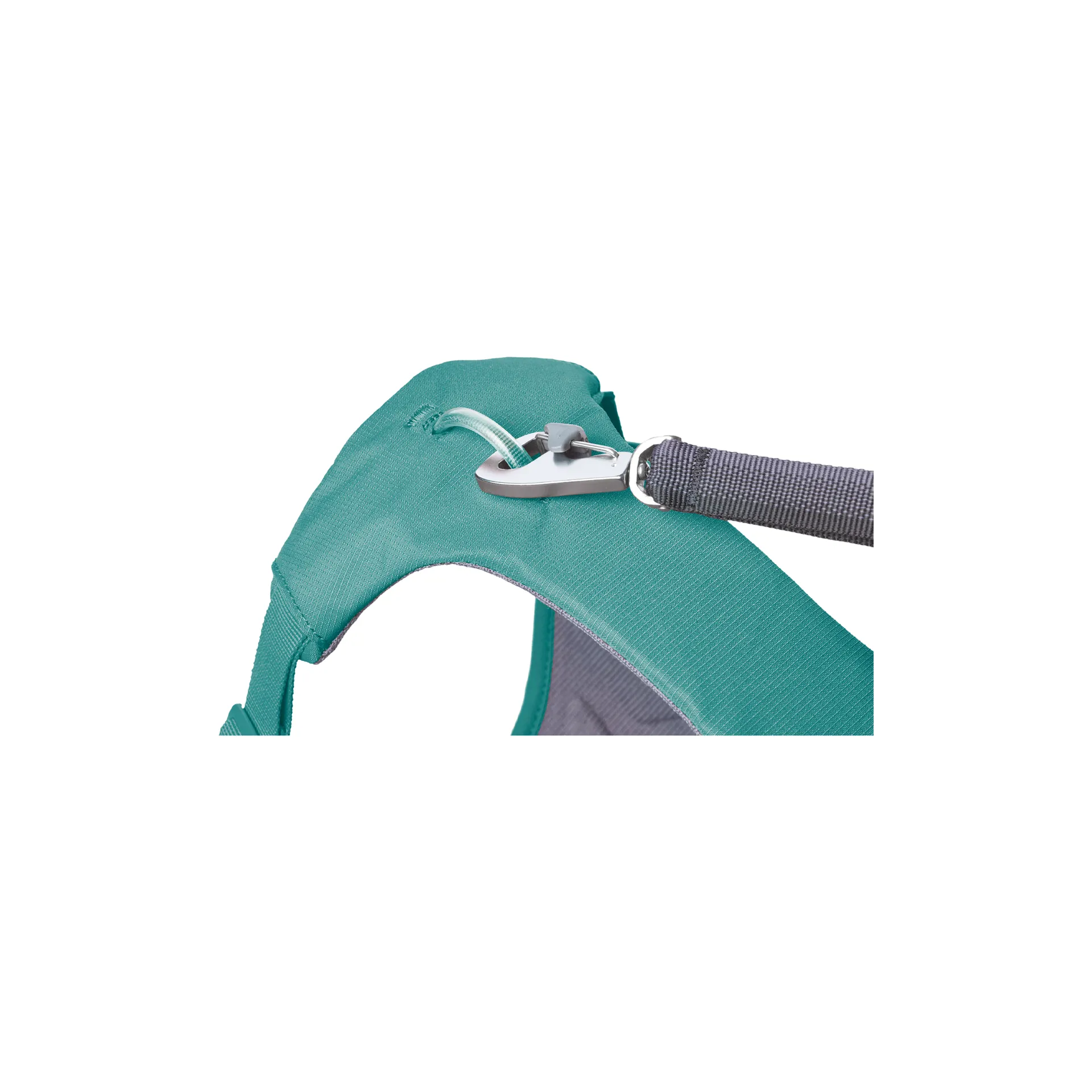 • Two leash attachment points: aluminum V-ring and reinforced webbing loop