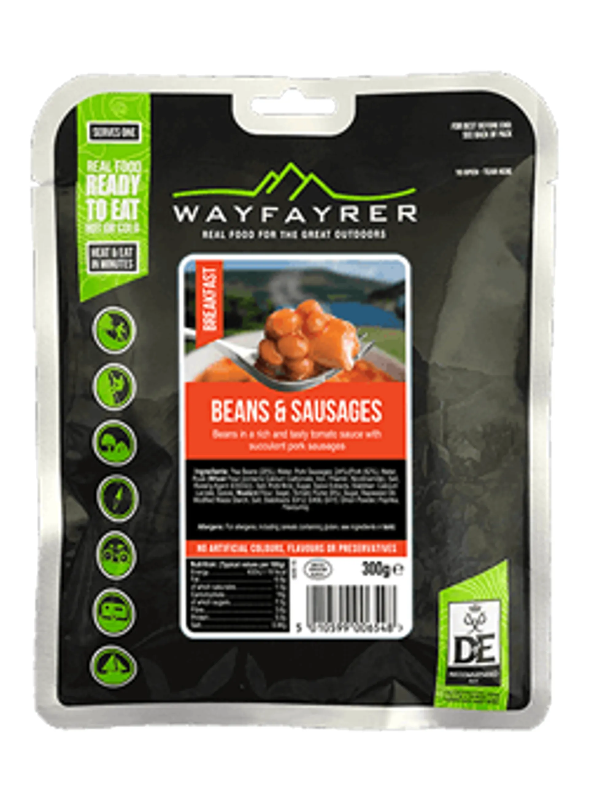 Ingredients: Pea Beans (29%), Water, Pork Sausages (24%) (Pork (62%), Water, Rusk,Wheat Flour*, Salt, Raising Agent: E503(ii)), Salt, Wheat Flour*, Sugar, Stabiliser: E327; Spices (Mustard), Ground Sage, Pepper Extract, Nutmeg Extract, Coriander Extract), Tomato Puree, Sugar, Maize Starch, Modified Maize Starch, Rapeseed Oil, Salt, Onion Powder, Ground Paprika, Flavouring. *Wheat Flour contains Calcium Carbonate, Iron, Niacin, Thiamin.