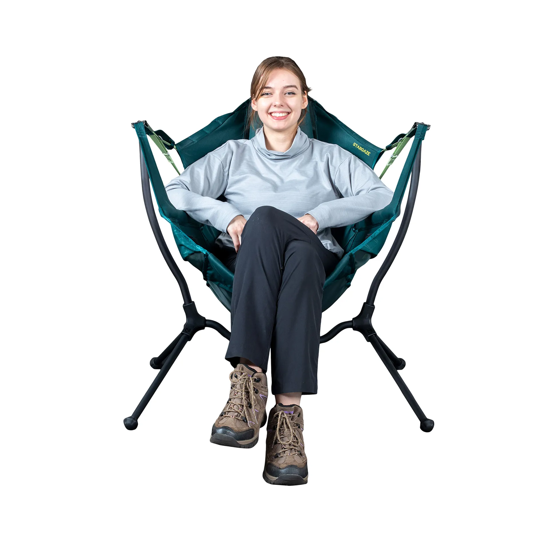 • Unlike traditional rockers, Stargaze is designed with a low center of gravity for stability on any surface, even rocky, sandy, or uneven ground.