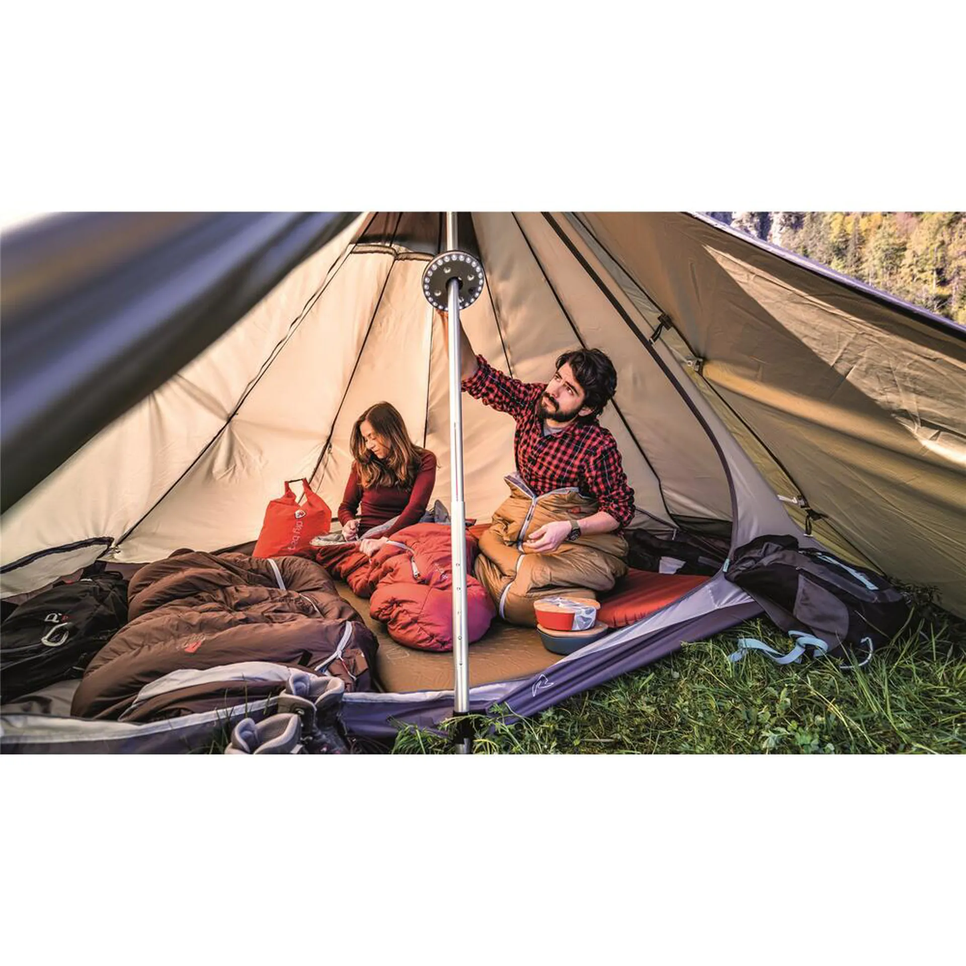 The Thacla is a clever 360° lamp designed specifically for tents and tipis with a centre pole. 4 different modes allow you to customise the brightness and spread of light depending on the time of day and size of the tent.