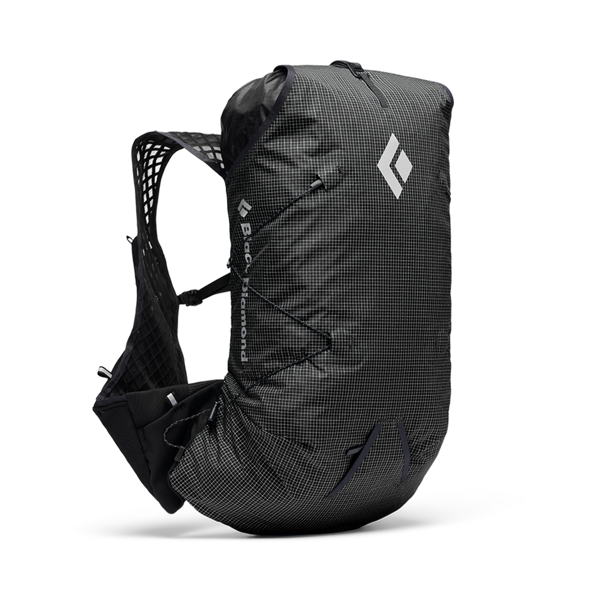 A 100% polyester diamond-pattern mesh lines the harness and back panel. Engineered for airflow and sweat management, it promotes continuous ventilation, wicks moisture efficiently, and dries quickly. Its soft texture minimises friction and irritation during prolonged or high-intensity movement, while its cushioning effect distributes weight evenly across the back and shoulders.