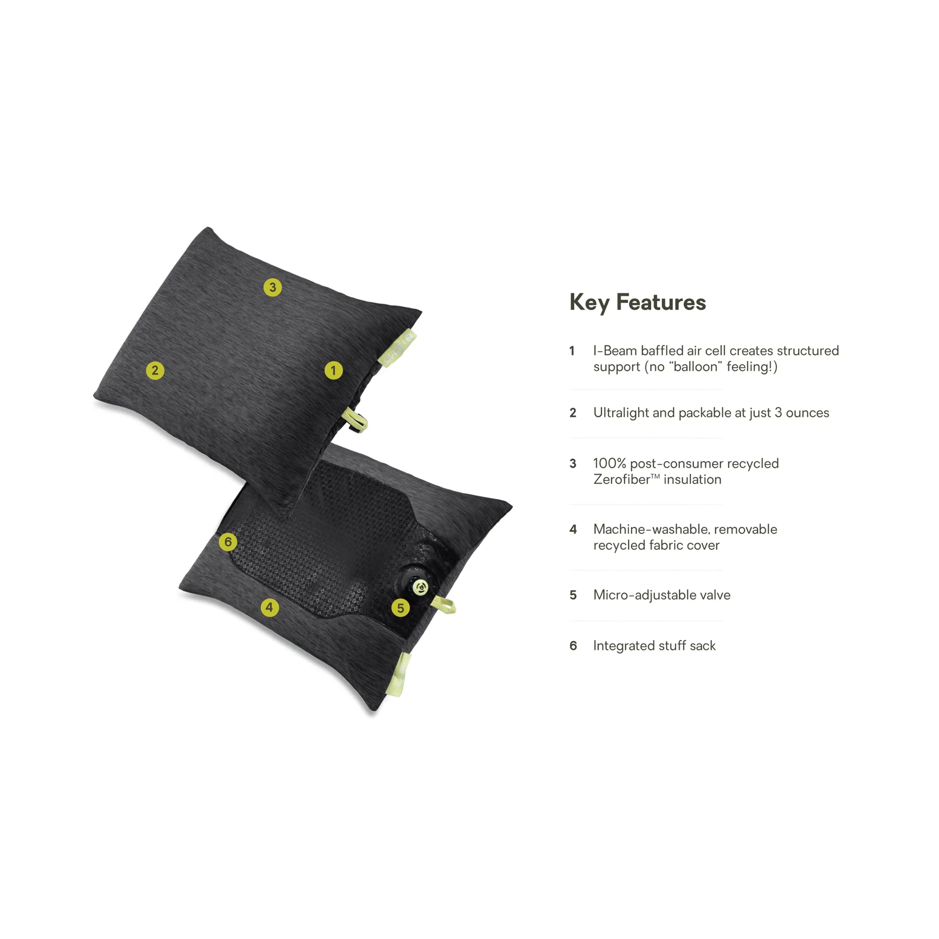 NEMO Fillo Elite Pillow Black Pearl Citron