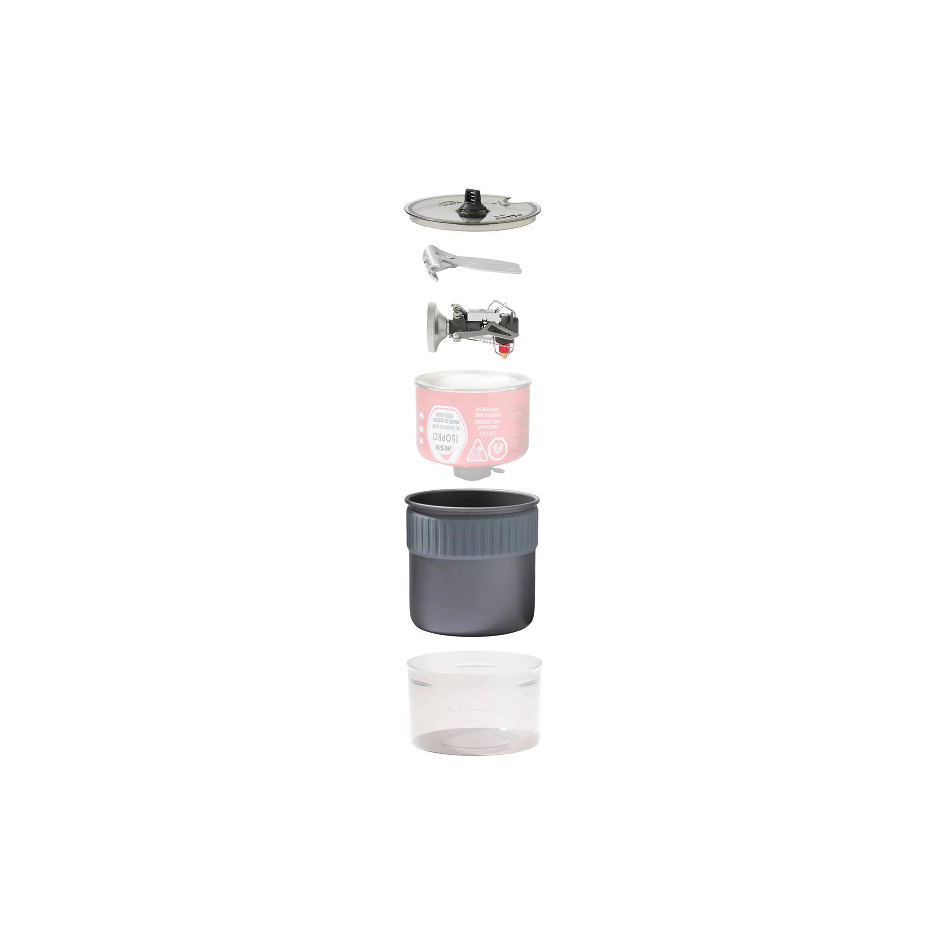 • Includes: PocketRocket® Deluxe stove with stuff sack; 1.2L hard-anodized aluminum pot with insulated grip; bowl;* strainer lid;* ultralight pot handle; kit stuff sack; room to nest 4- or 8-oz IsoPro™ fuel.