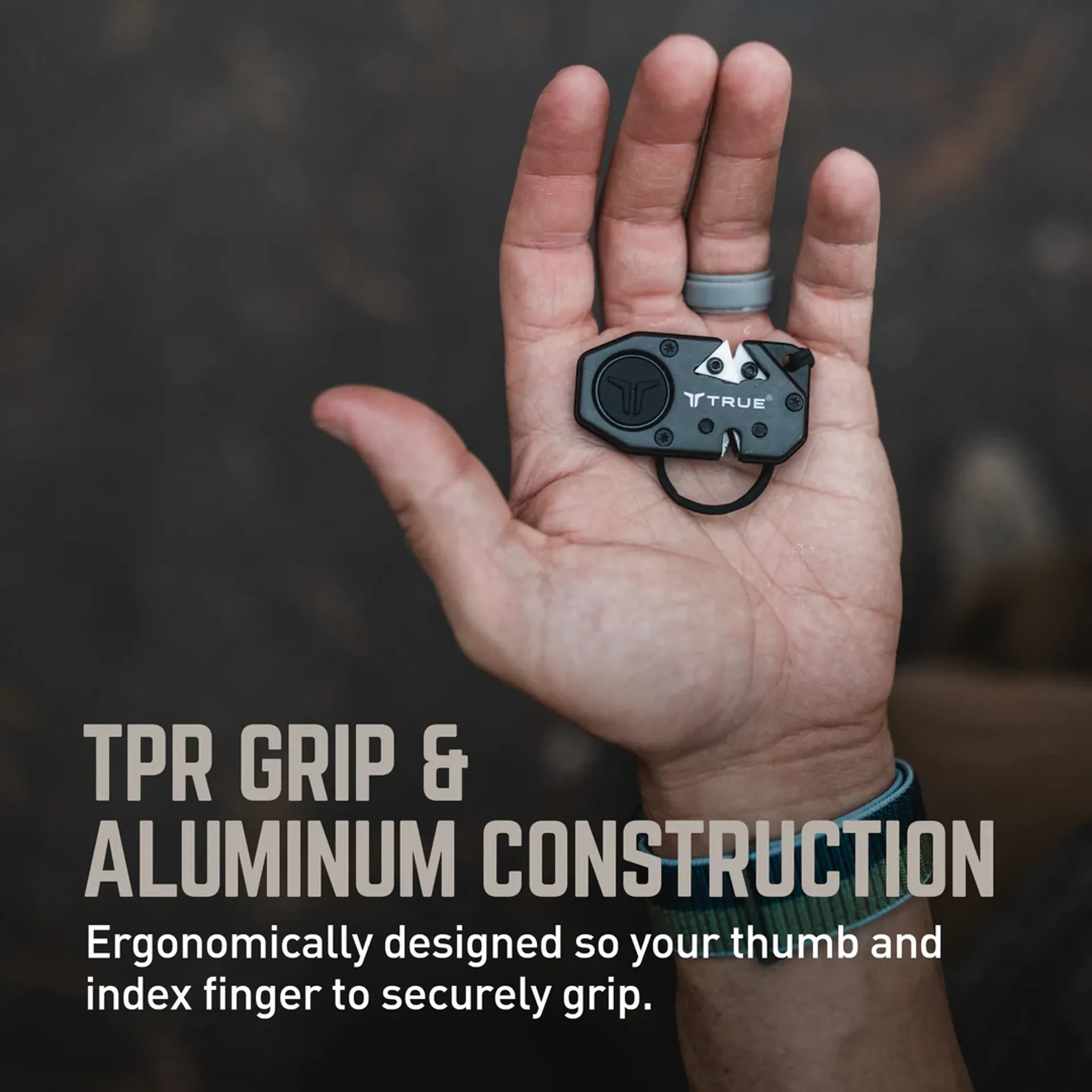 The sharpener is ergonomically designed so your thumb and index finger can grip it securely, making using it a breeze, whilst the dedicated lanyard/ key ring hole allows you to attach it securely to your keys or kit easily.
