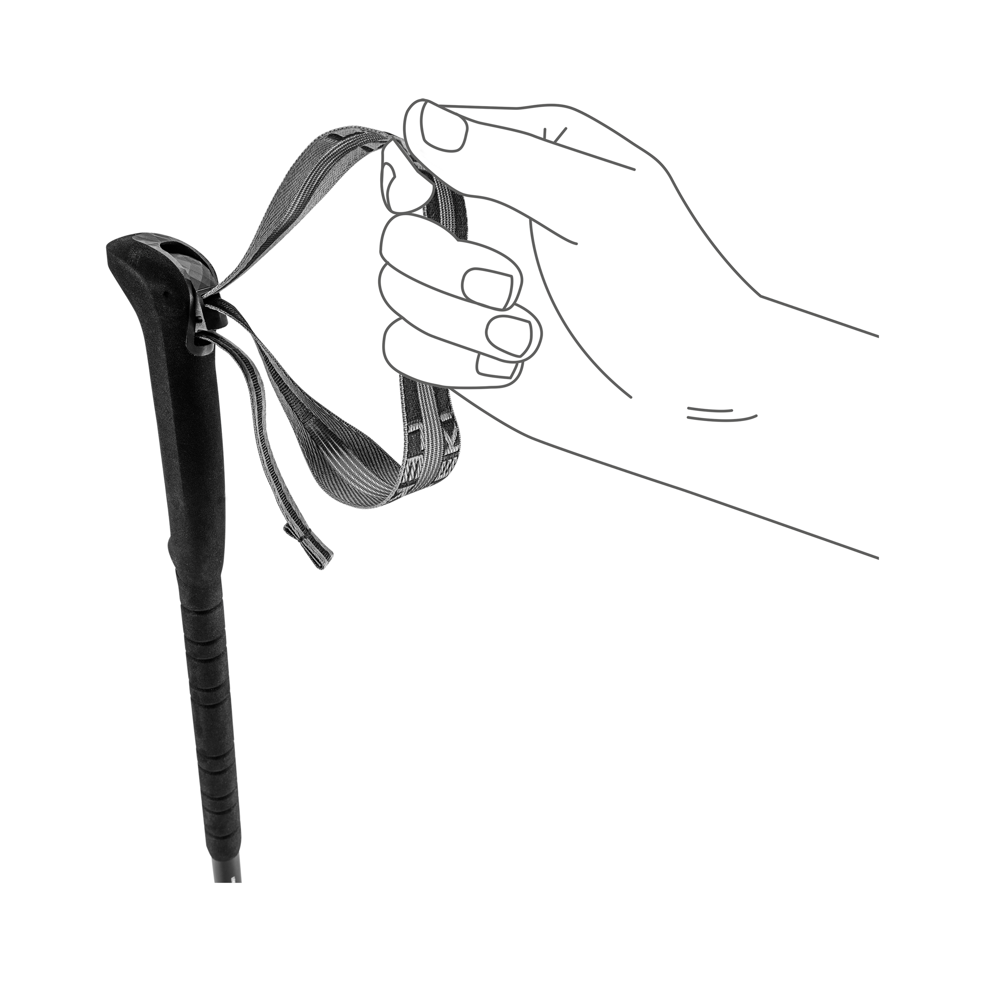 The wrist strap combines reinforced webbing with breathable mesh to create a secure yet comfortable connection between hand and pole. The mesh design improves ventilation and reduces sweat buildup.