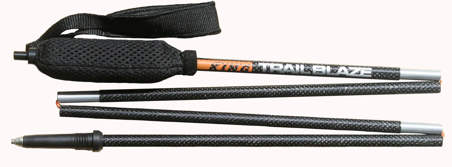 Mountain King Trail Blaze Skyrunner Carbon. Mountain King have stripped the traditional walking pole down to the bare essentials and are now making them out of carbon! This means that the Skyrunners are amongst the lightest trekking poles on the market (106g for a 120cm), and the 4 piece construction means that they are of the smallest pack size too. This allows you to be able store your poles inside your pack instead of strapping them to the outside.