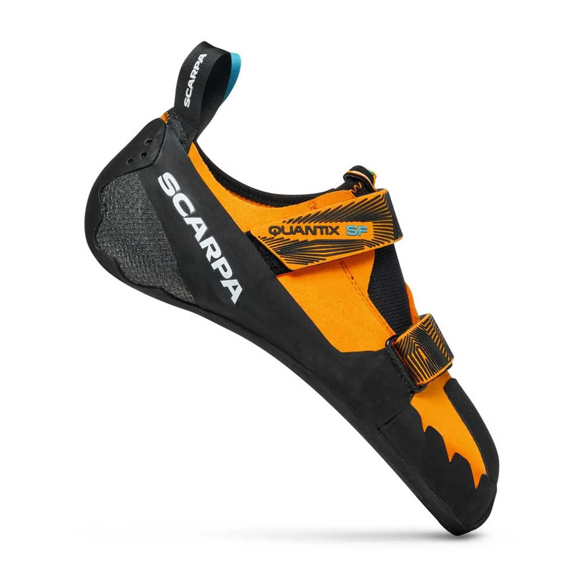 The SCARPA QUANTIX SF presents precision climbing in a new way. The innovative Single Frame technology holds the foot from below like a hand, allowing excellent precision with dynamic flex and great power transmission. It has a neutral shape with a subtle downturned and a medium to high angled toe box, with a ¾ Flexan dynamic midsole for excellent edging on all styles of climbing. Recommended for technical climbing on all rock types and plastic.